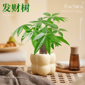 发财树小盆栽室内绿植吸甲醛办公室桌面摆件懒人四季好养花卉植物 1件