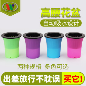 直销新款个性创意时尚高腰彩色水培盆栽懒人自动吸水园艺树脂花盆 20个