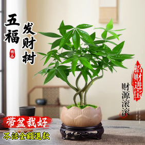 2025新款发财树小盆栽客厅办公室开业送礼招财盆景五福新中式绿植 1件