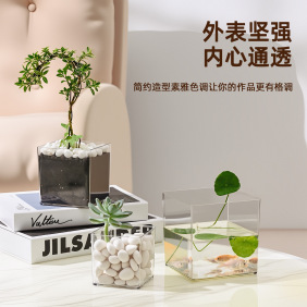 亚克力方形防摔透明直筒款圆形花瓶多肉仙人掌花盆客厅水培绿植皿 1个