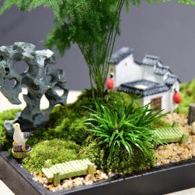 文竹盆栽室内禅意绿植山水苔藓微景观植物办公室茶室四季盆景 1件