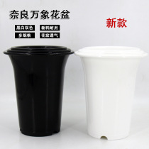 奈良圆口花盆多肉植物种植结实耐用黑白色圆形塑料有孔万象盆深盆 1件