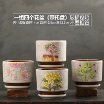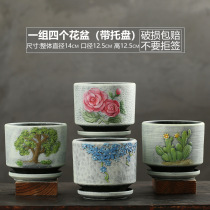 花盆陶瓷大号中号带托盘创意个性家用绿萝吊兰多肉小花盆 1件
