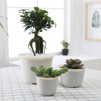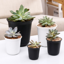 白色多肉钵长钵圆形多肉花盆黑色磨砂矮胖万象盆塑料园艺批发 1个