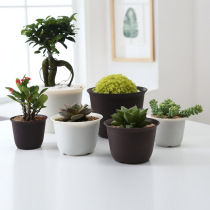 仿紫砂圆形花盆 仿古多肉花盆塑料花盆 小盆栽盆景种植盆 2个