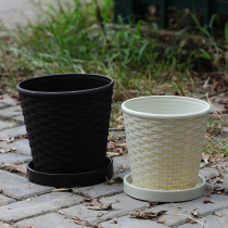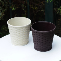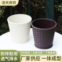 新款仿竹编织树脂塑料花盆大号室内阳台盆栽多肉绿萝植物创意花盆 5个