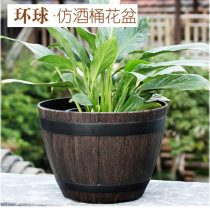 环球仿木纹树脂花盆种花种树复古创意塑料绿植花卉大欧式复古花盆 1个