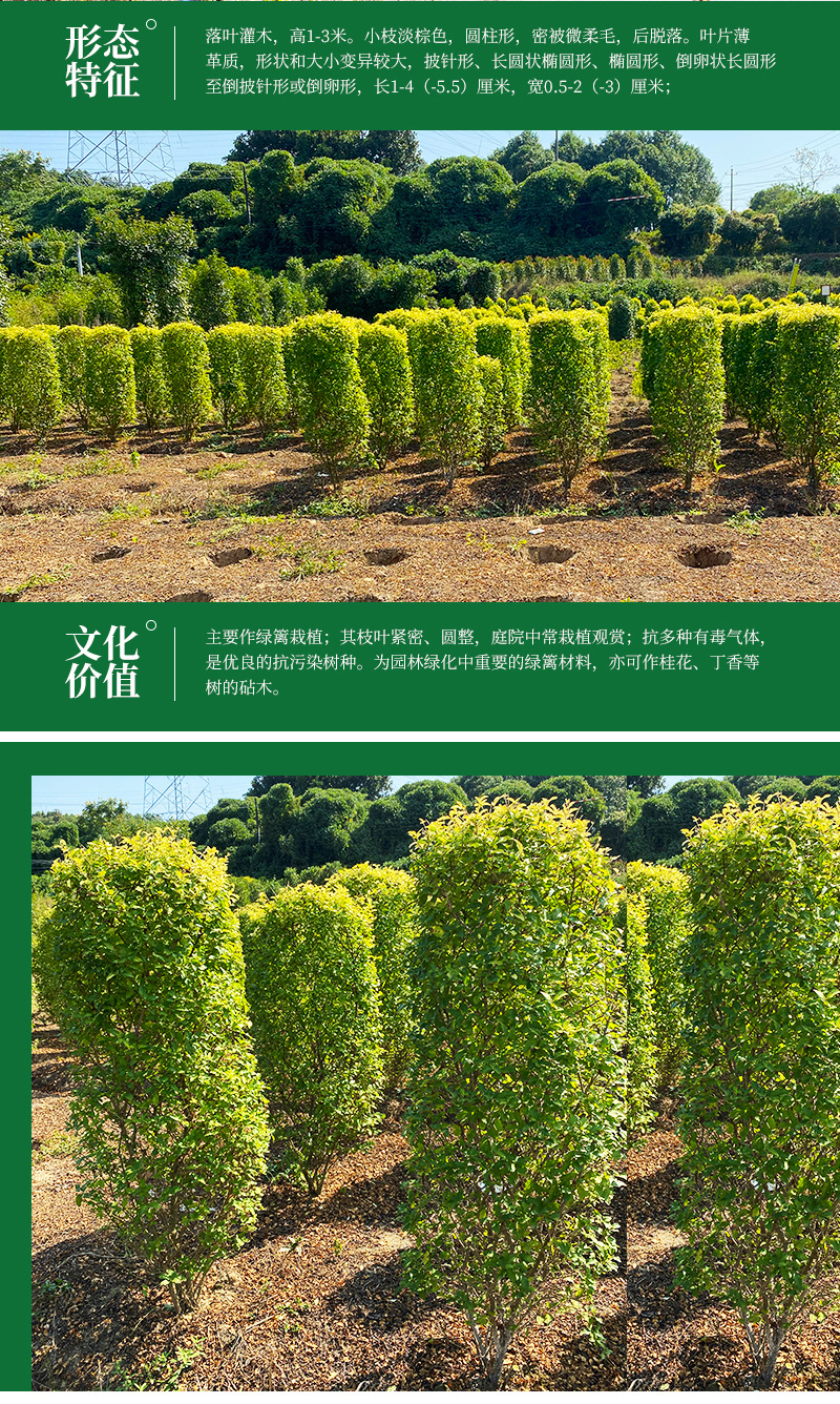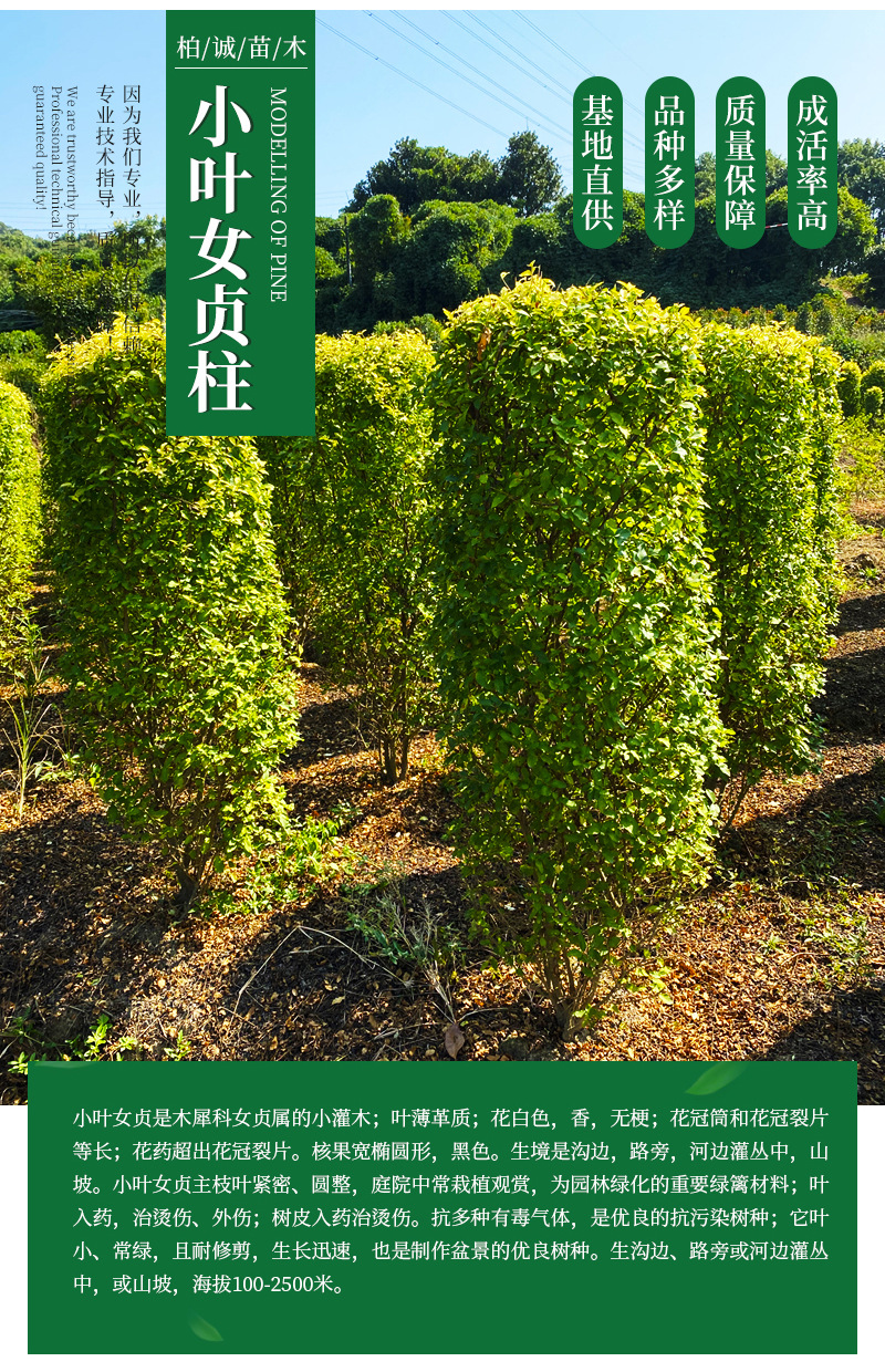 小叶女贞柱 园林绿化工程毛叶丁香柱 别墅工程1.5米绿化带灌木丛 50棵