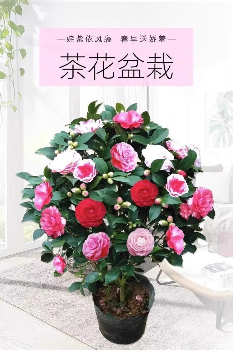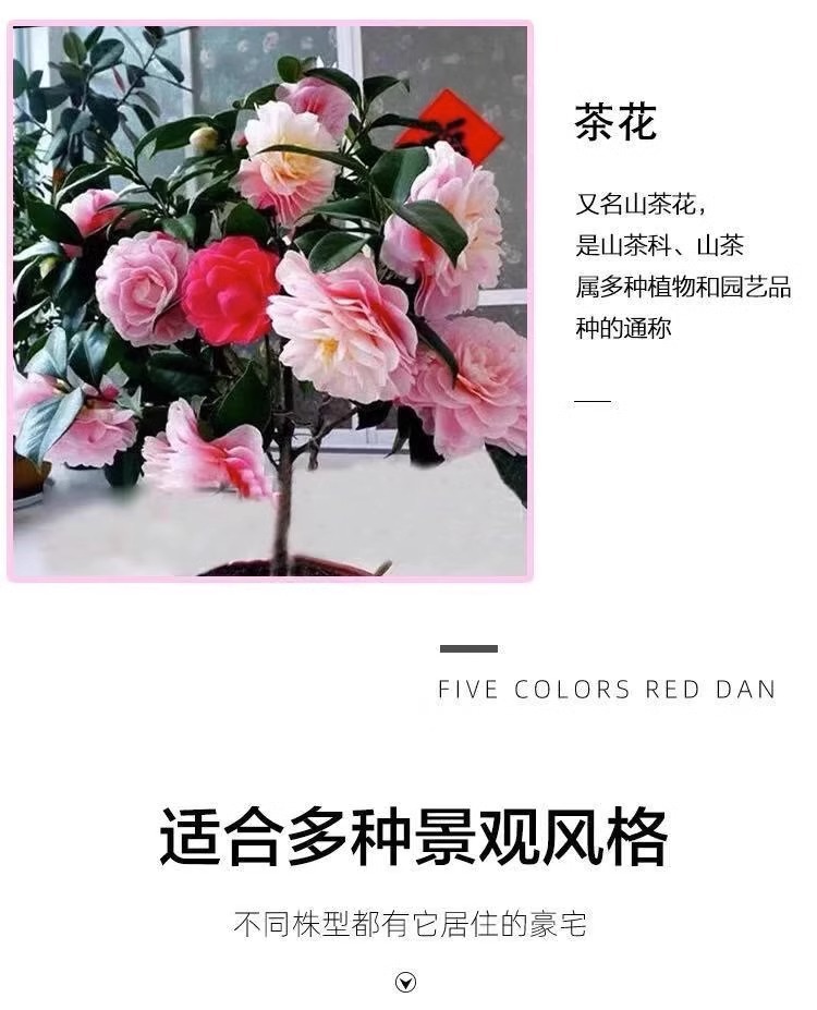 香妃茶花树苗盆栽带花苞五色赤丹植物玫瑰花好养山茶花苗四季开花 1颗