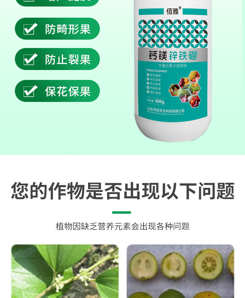 佰雅中量元素水溶肥 钙镁硼锌铁 防裂增重促花促果 1桶