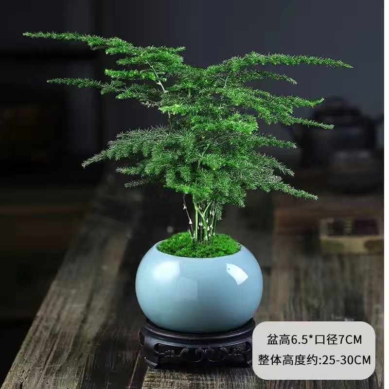 文竹盆栽室内禅意绿植山水苔藓微景观植物办公室茶室四季盆景 1件