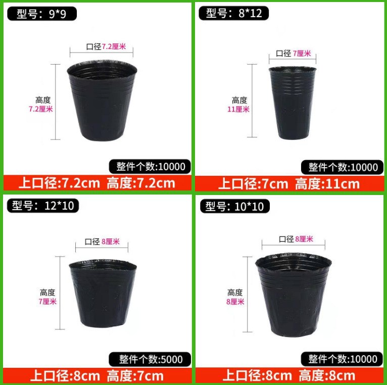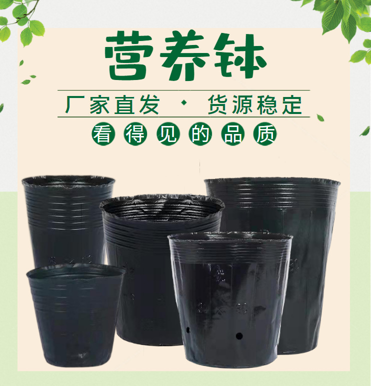 批发营养钵育苗杯批发营养钵育苗杯育苗花盆苗圃植物加厚花盆黑色 2个