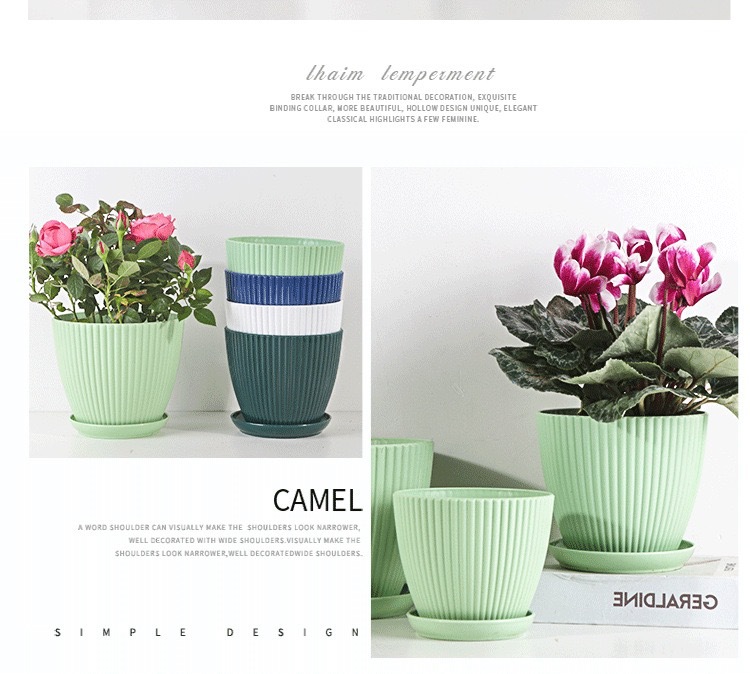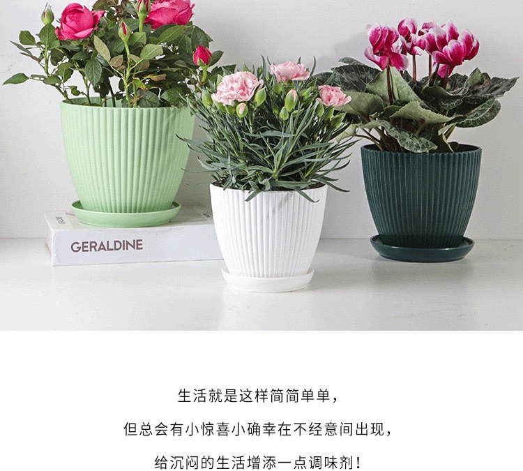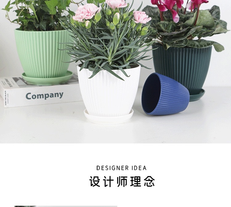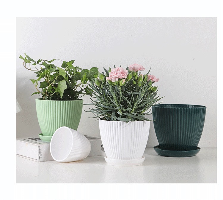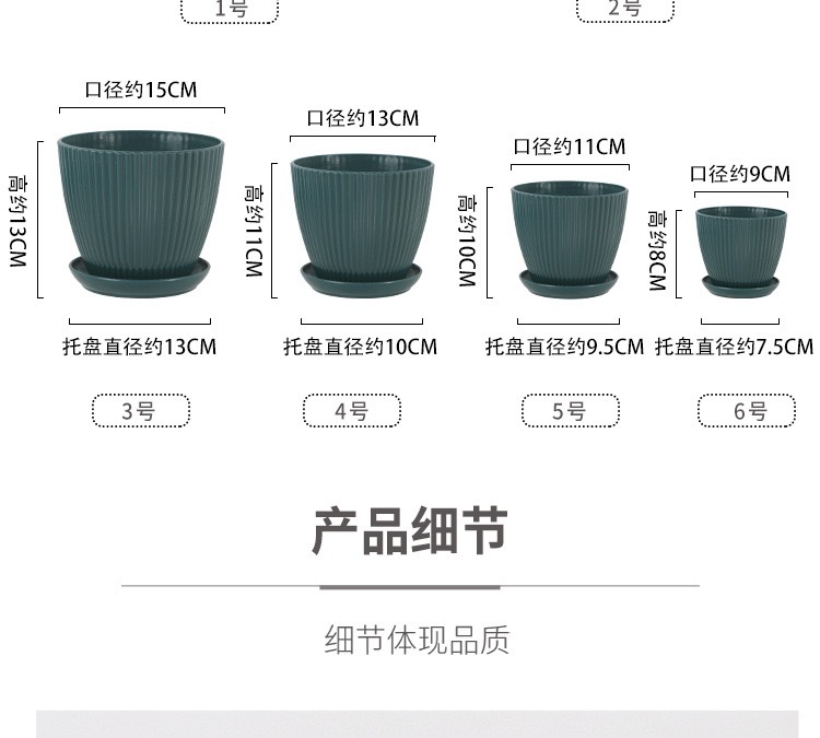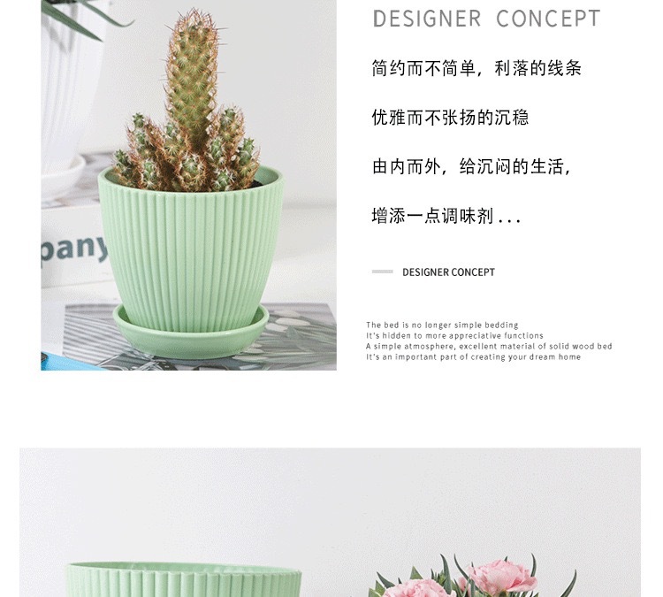 多肉花盆家用竖纹盆树脂植物盆栽非陶瓷盆阳台小花盆加厚简 约大气 1个