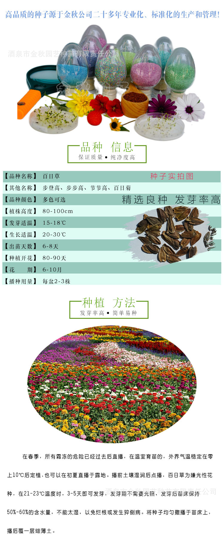 百日草种子 野花组合花种酒泉批发大量春播好养活四季开花波斯菊 100克