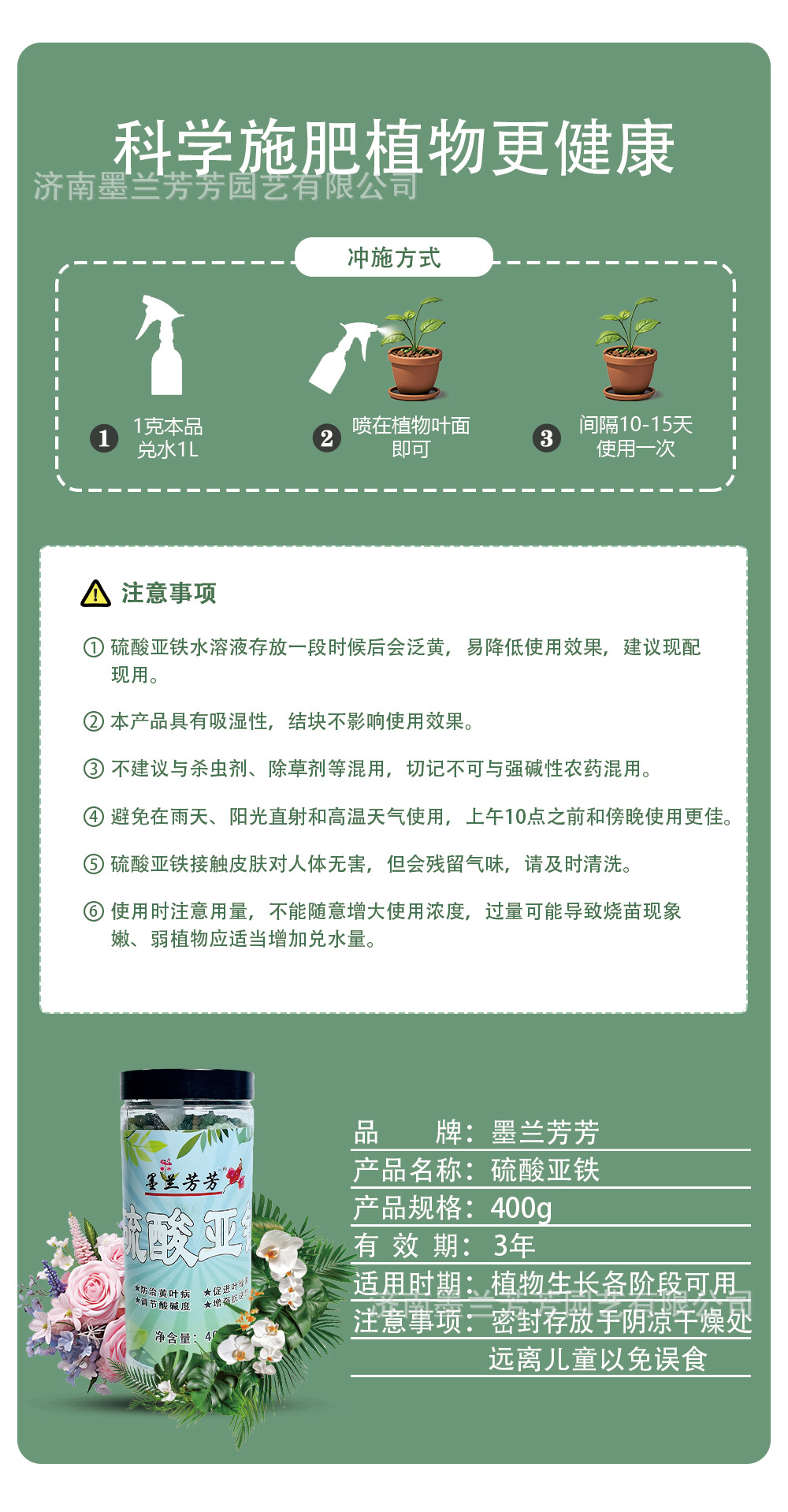 硫酸亚铁花卉补铁酸性土壤调节剂栀子花桂杜鹃兰花防黄叶水溶肥料 1瓶