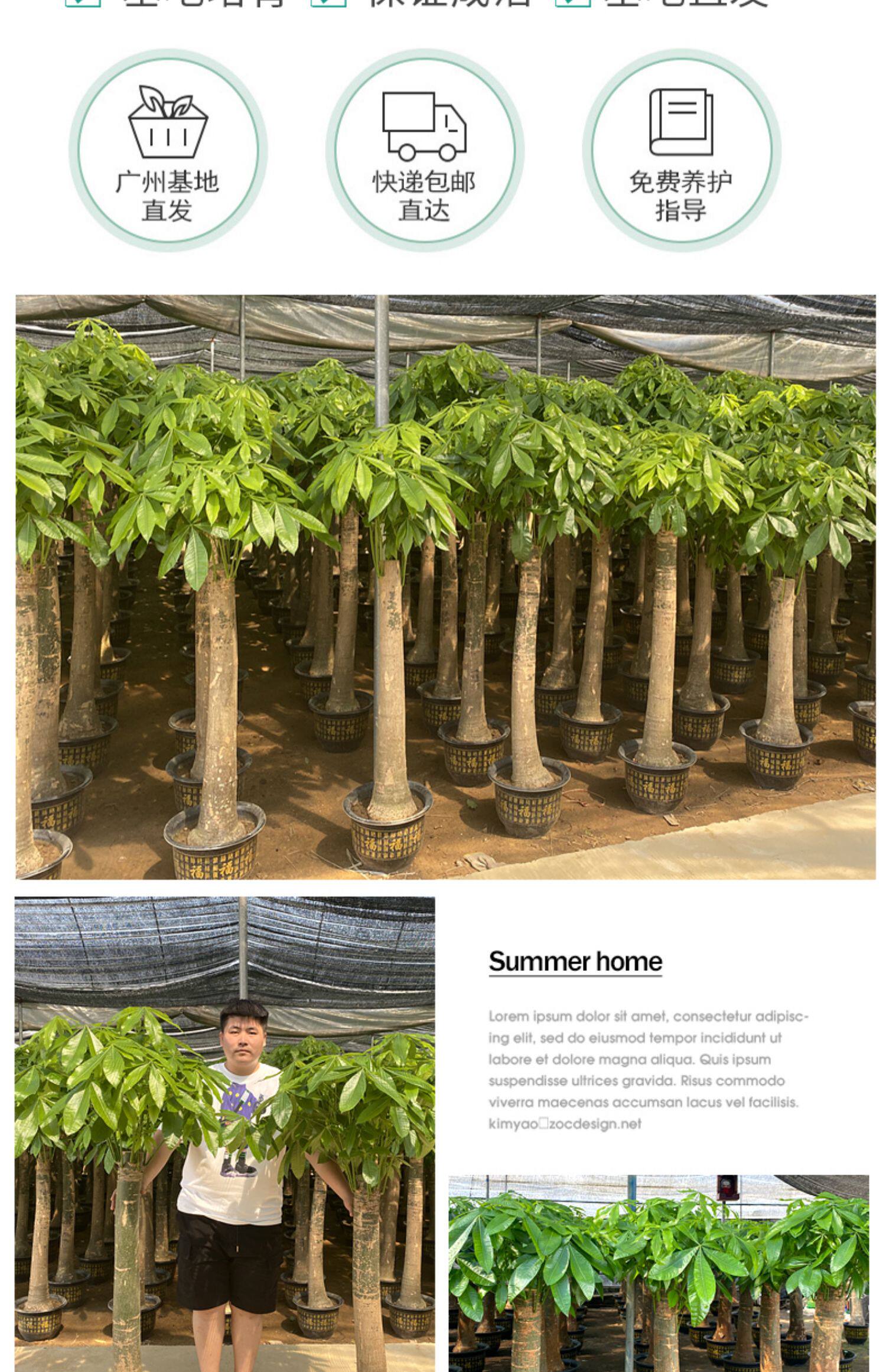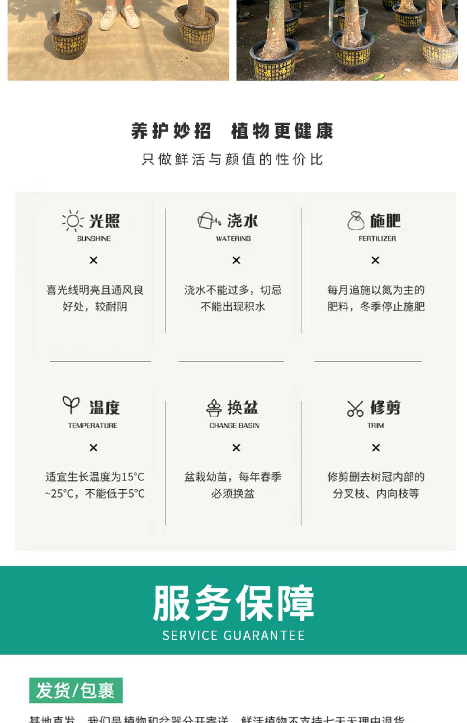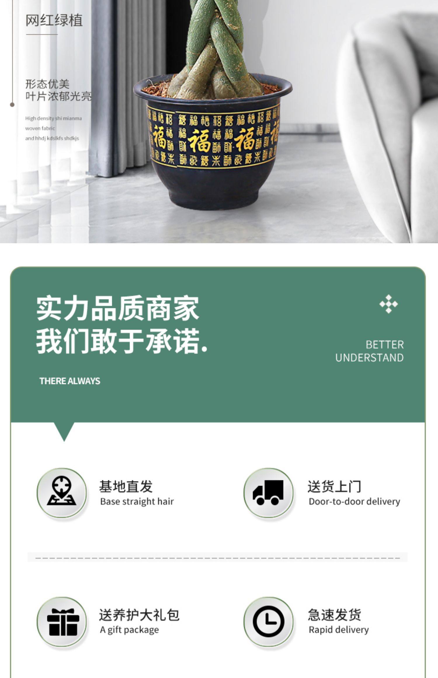 商品描述 购买须知:1盆即可提交订单发货 物流配送: 默认发德邦、顺丰、极兔快速【不指定】 花盆和植物分开打包发货。 单杆发财树/步步高发财树是原盆土发货 辫子发财树裸根发货 广州 佛山满3000元可以配送上门。 报价不含税:提供开发票服务,收5个点。