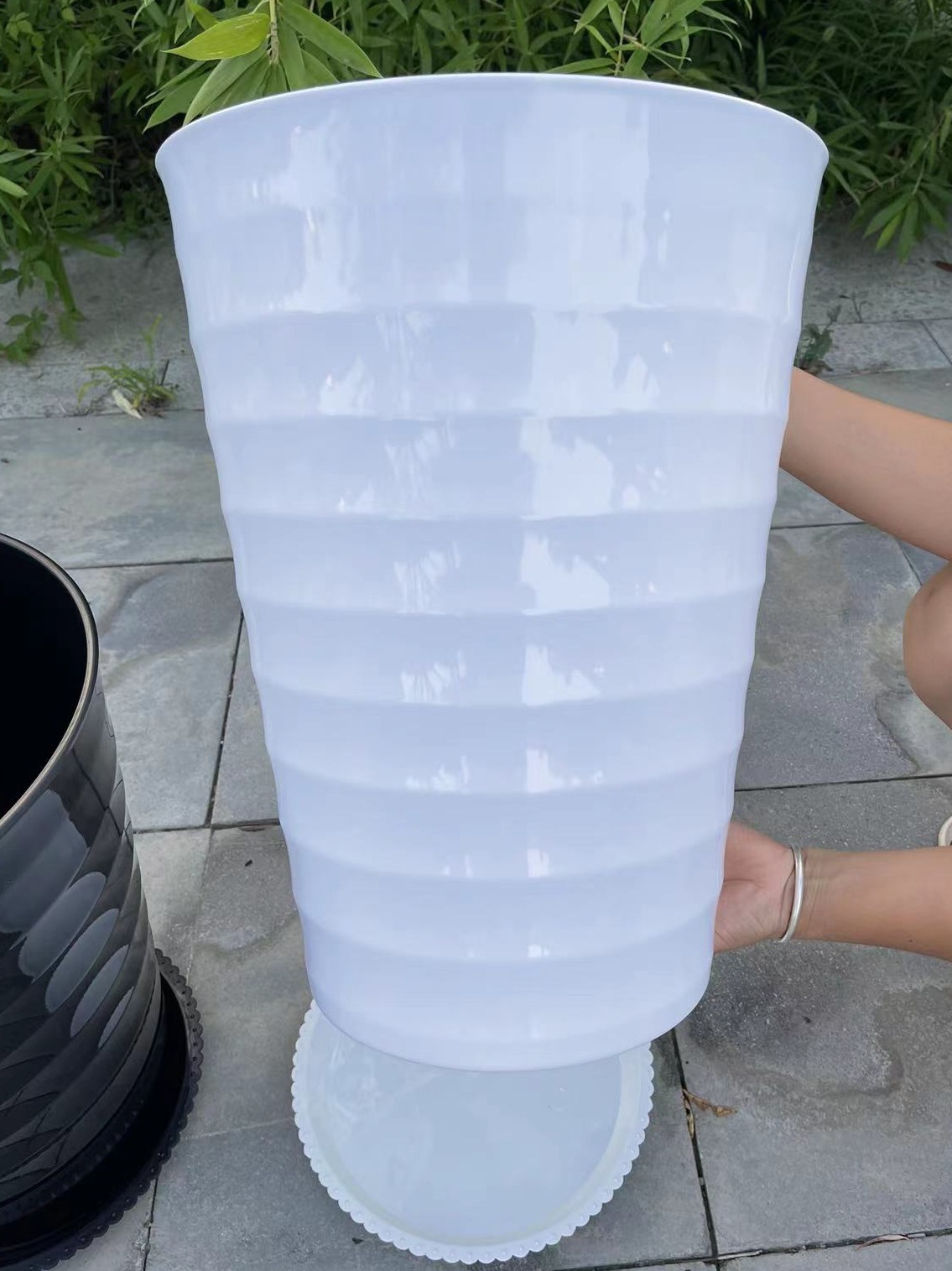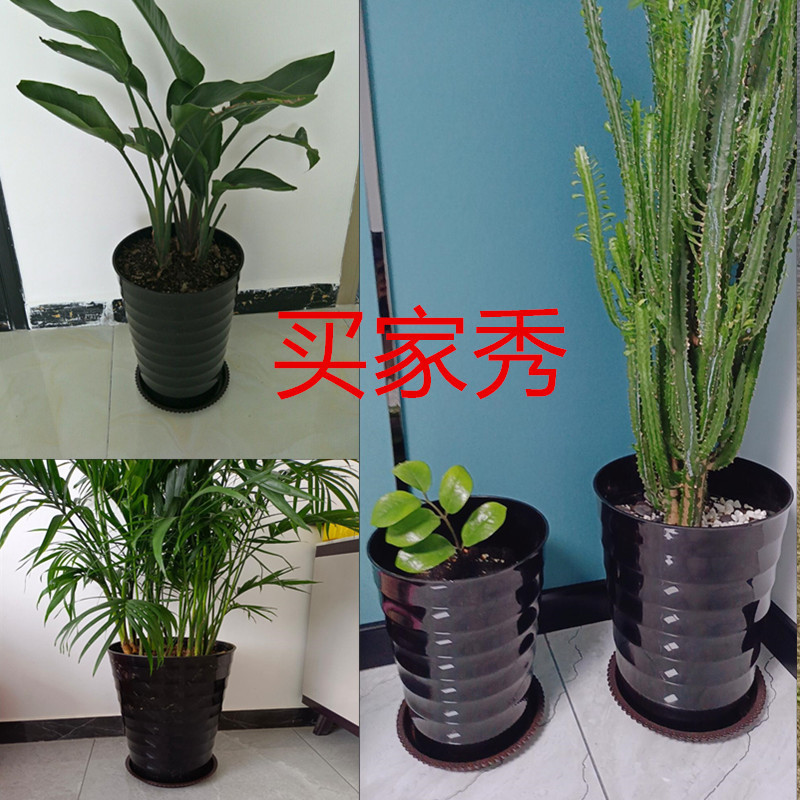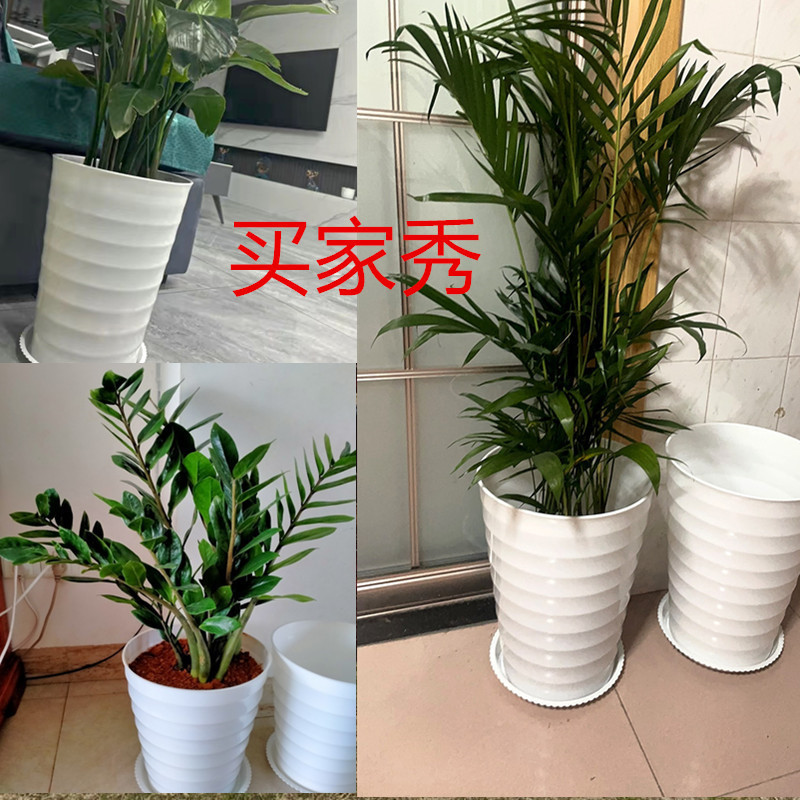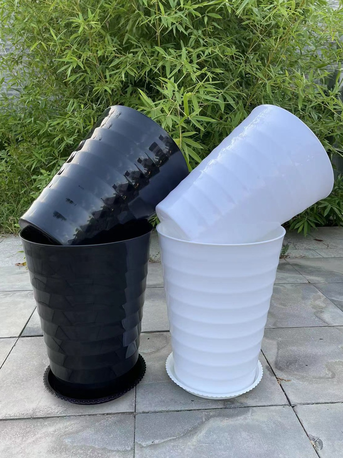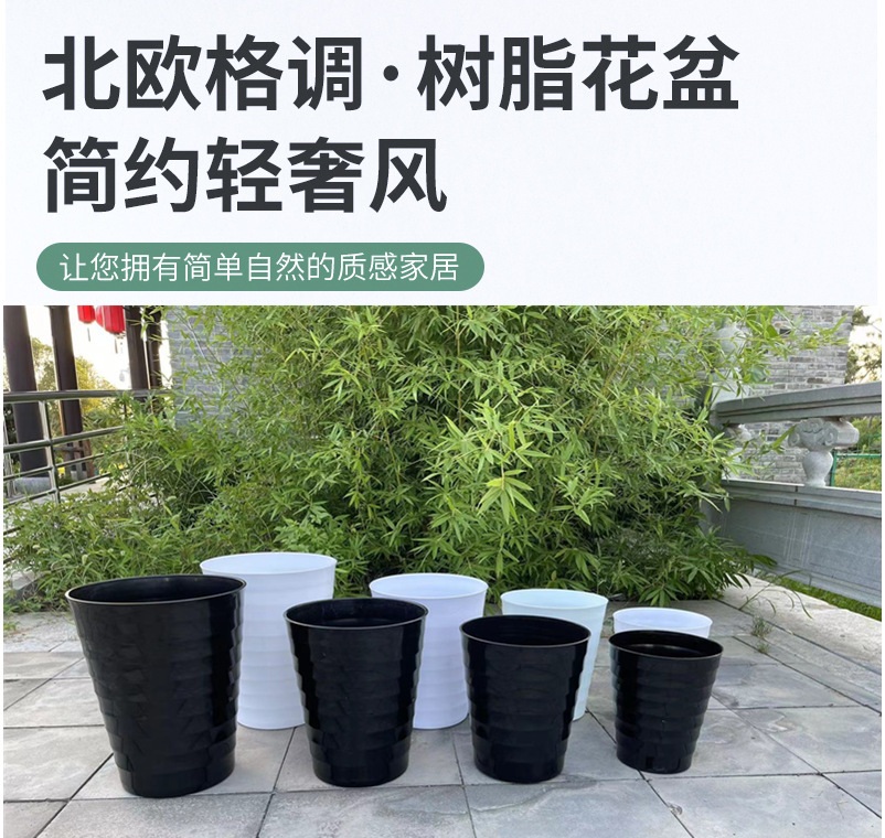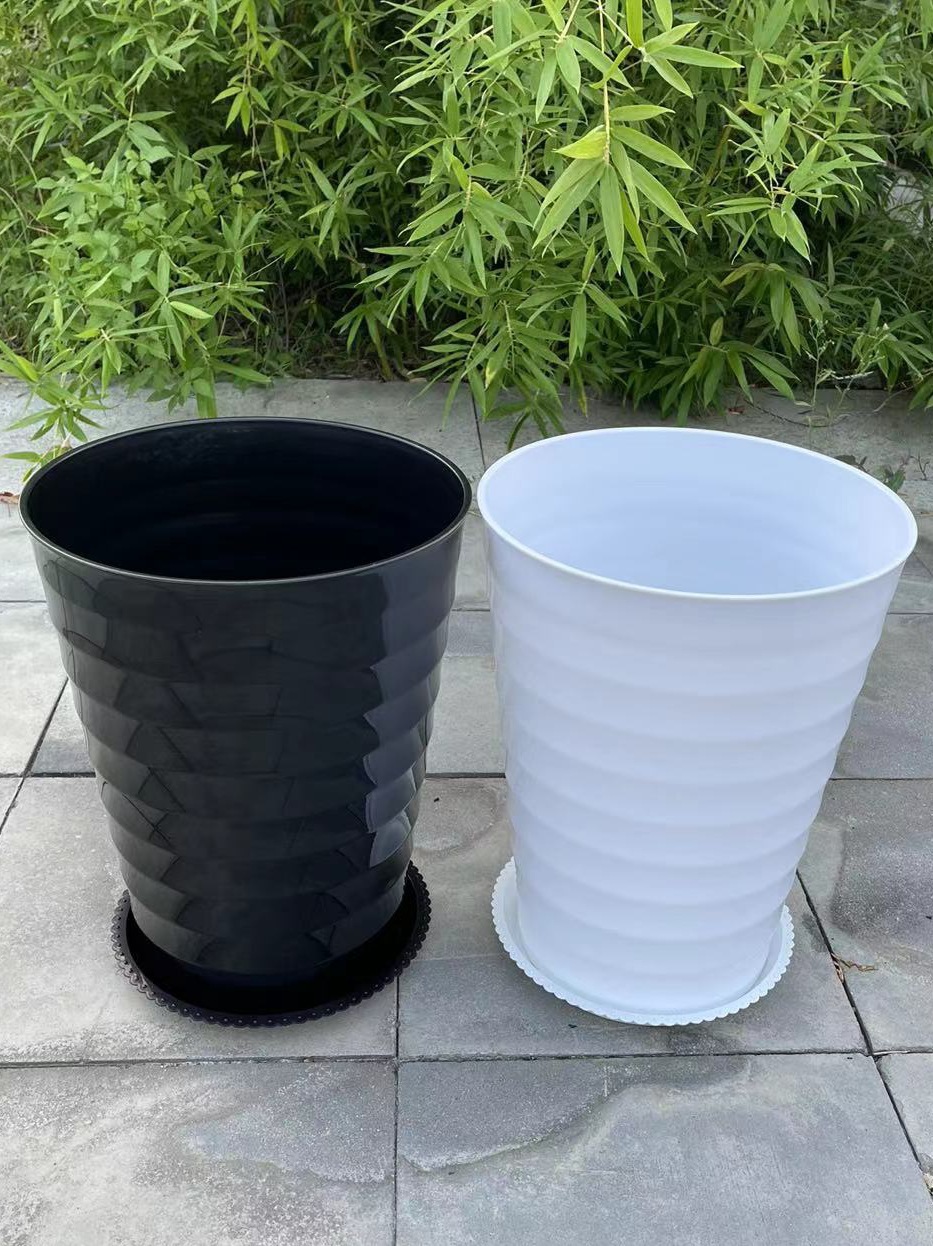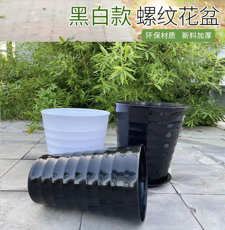 家用特大号黑白色螺纹花卉金钱树花盆客厅树脂植物阳台简约塑料盆 1个