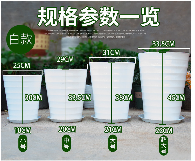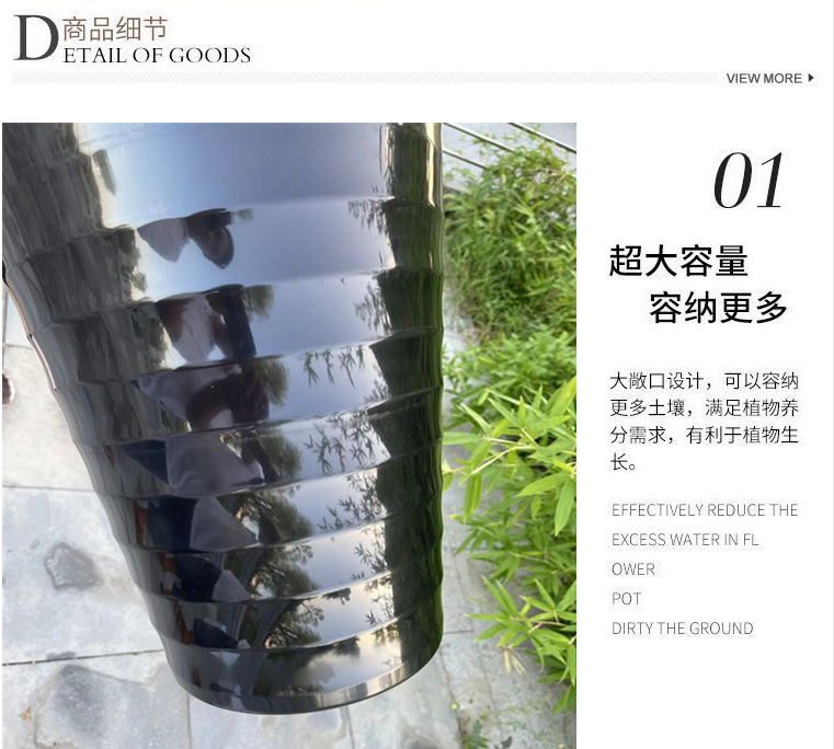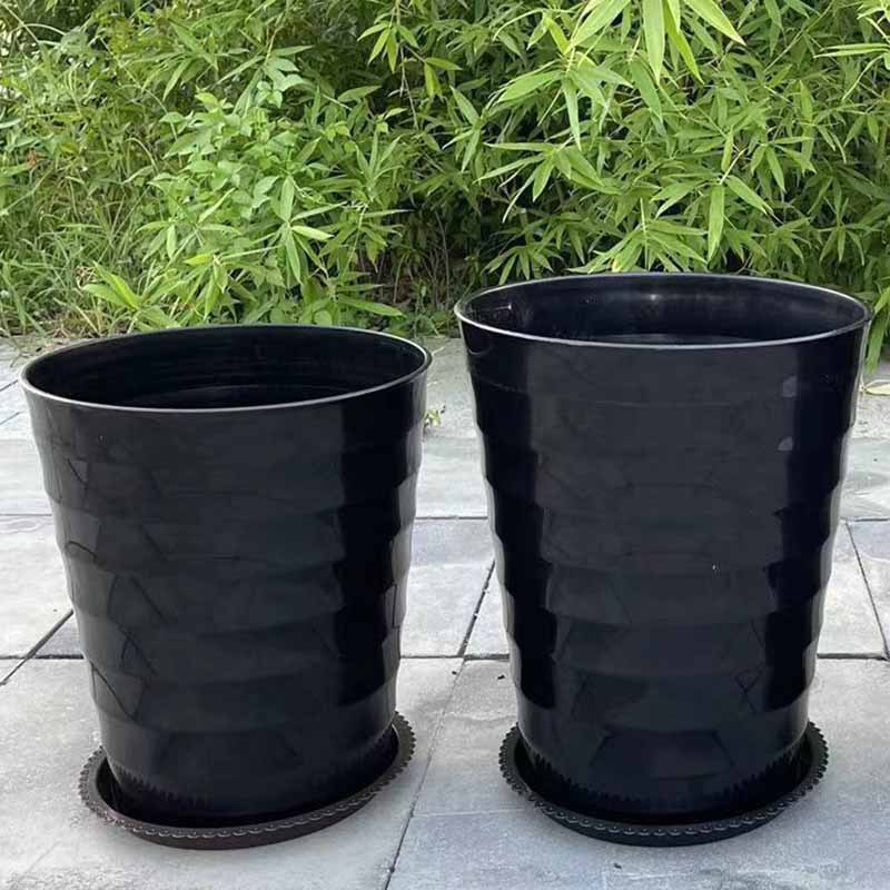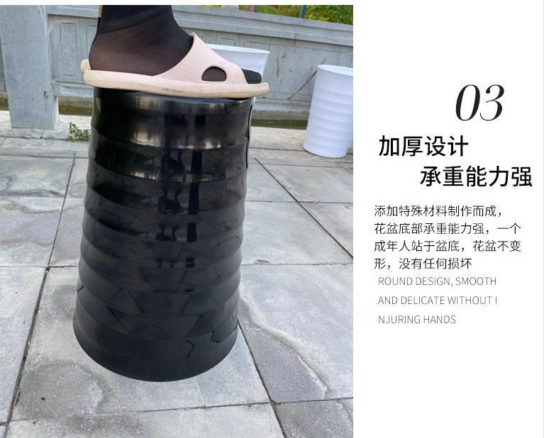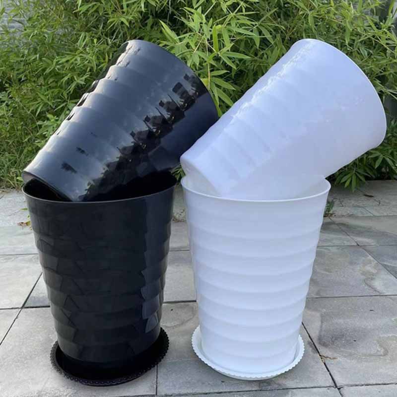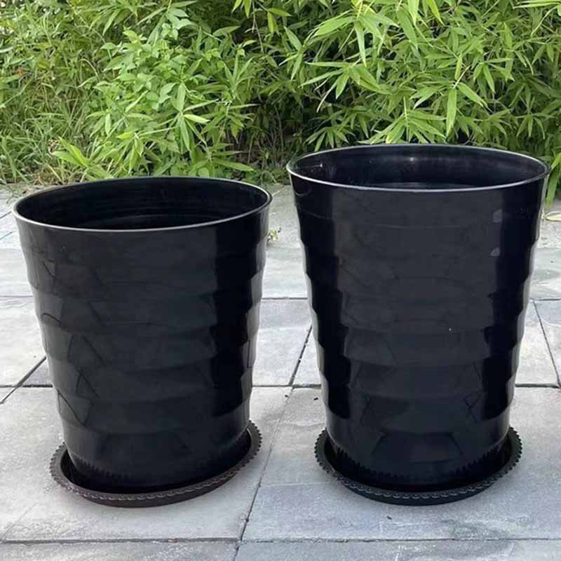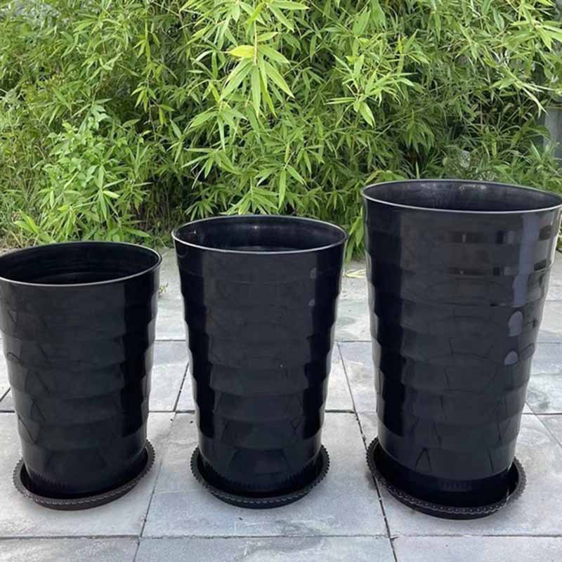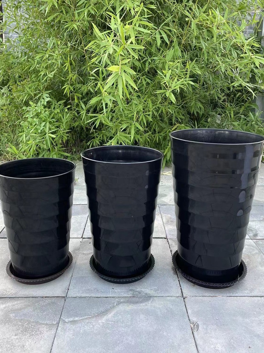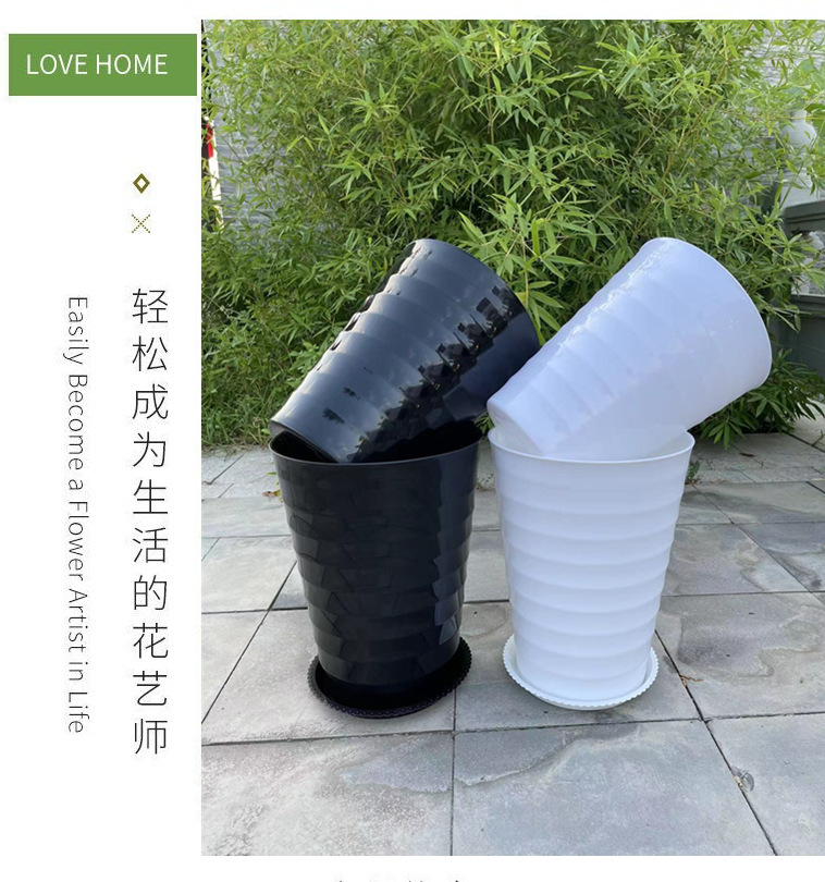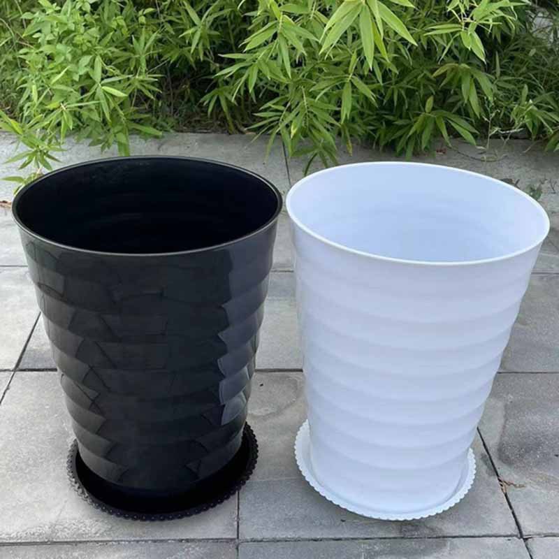 家用特大号黑白色螺纹花卉金钱树花盆客厅树脂植物阳台简约塑料盆 1个