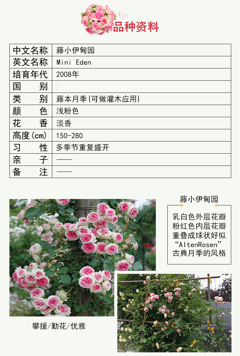藤本月季花苗藤小伊甸园阳台庭院爬藤绿植花卉玫瑰植物四季藤小伊 1棵