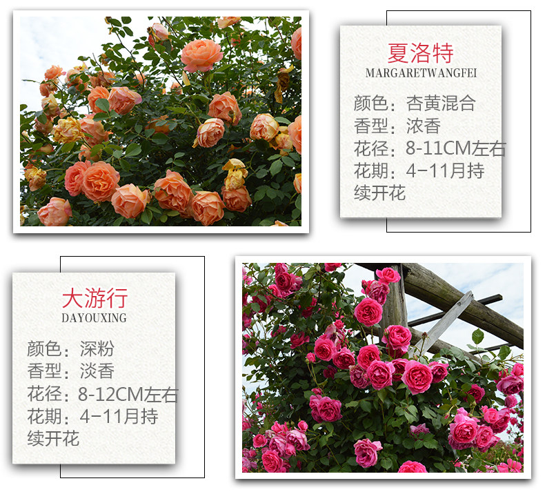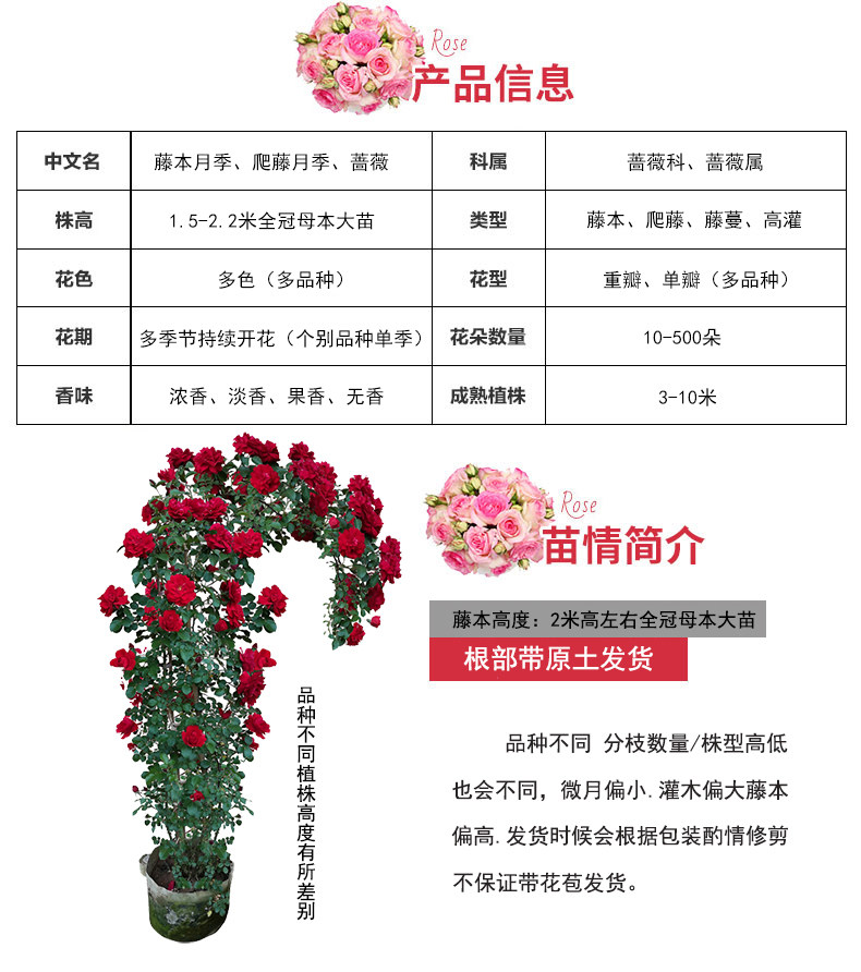 大苗欧月藤本月季玫瑰蔷薇花苗爬藤植物庭院爬墙阳台盆栽四季花卉 1棵