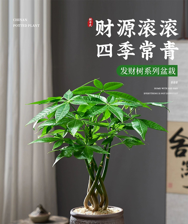 五福发财树盆栽室内植物招财树办公室客厅茶几花卉小绿植四季好养 1件