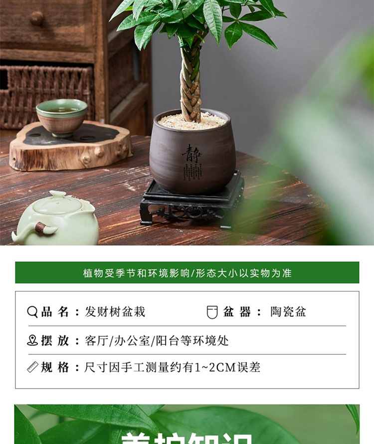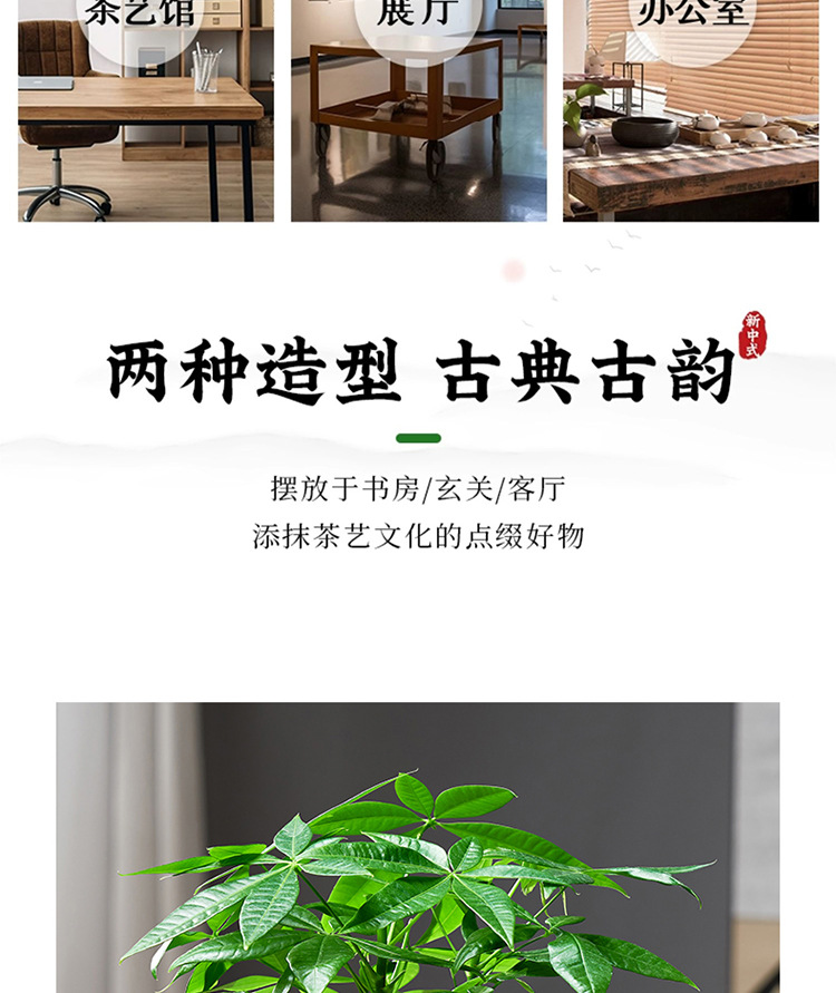 发财树盆栽小盆景植物室内办公桌绿植四季常青茶室装饰摆件礼品 1件