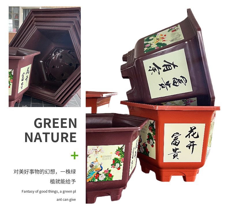 红色轮拖 加厚塑料花盆 大号简约养花种菜阳台楼顶庭院花盆 1个