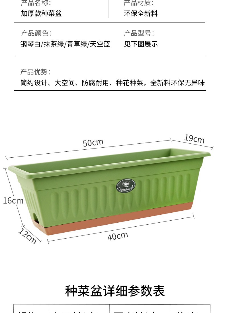 阳台长方形种菜霍伦盆种菜家庭阳台蔬菜塑料长条花盆槽盆厂家直销 1个