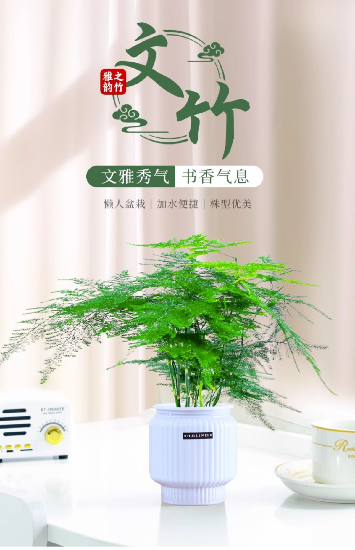 文竹盆栽室内盆景造型植物客厅办公室桌面创意绿植禅意花卉摆件 1件