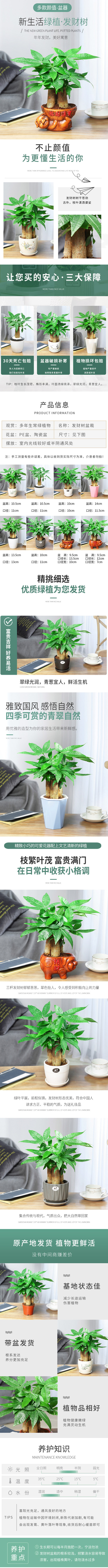 发财树小盆栽花卉绿植物办公室内吸甲醛绿萝文竹水培招财树好养活 1件