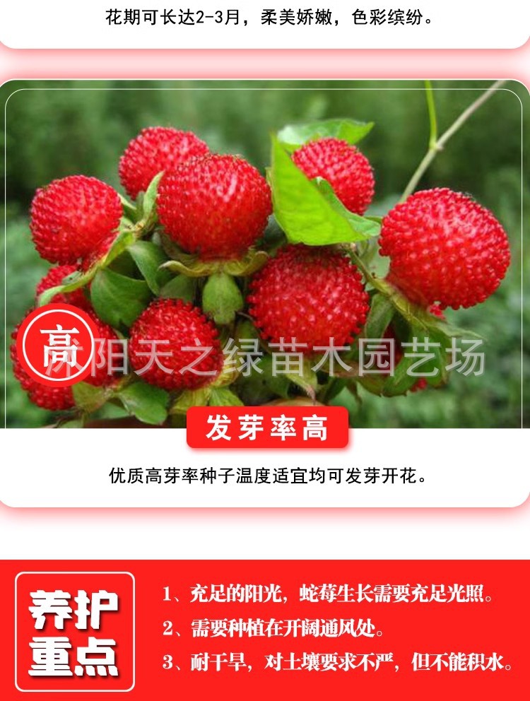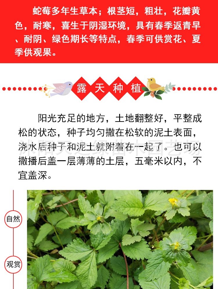 蛇莓种子红色野草莓散装水果四季易种阳台园艺花种子观果花籽花海 1件