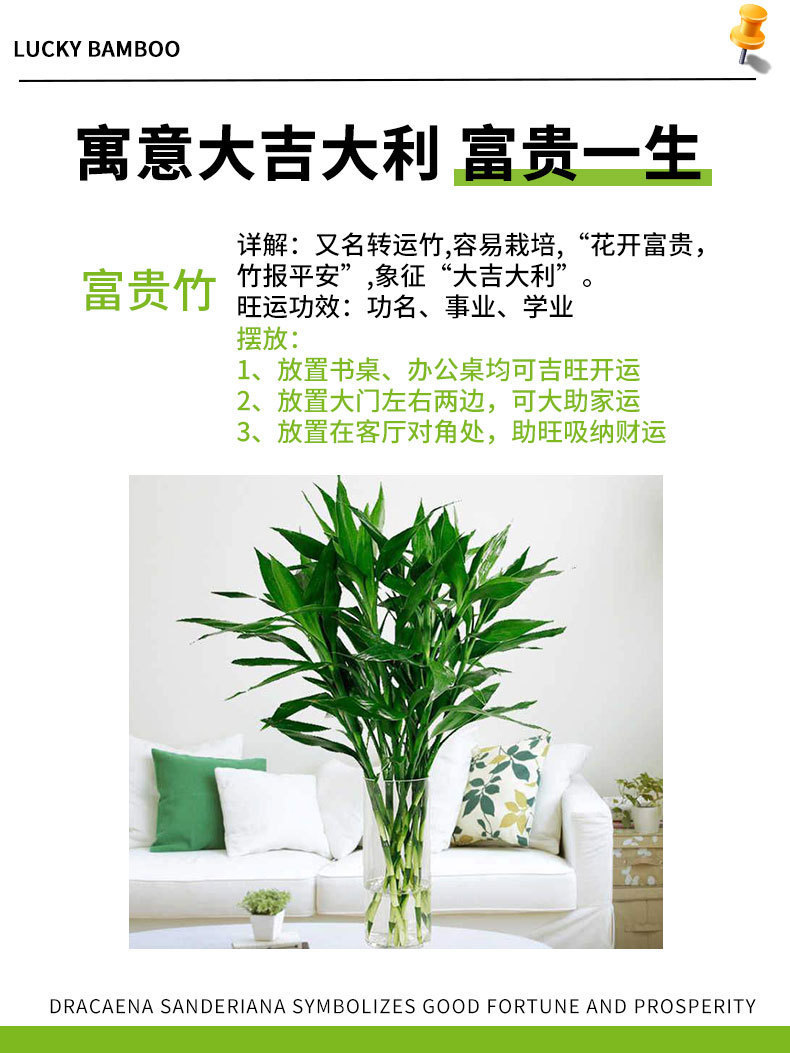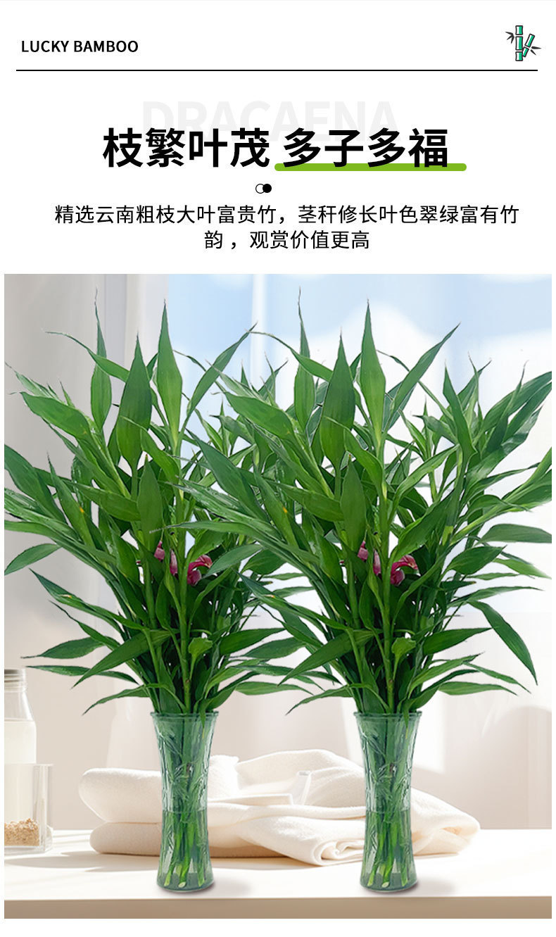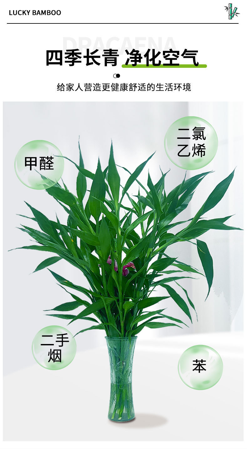 一件代发富贵竹水培植物室内绿色盆栽发财树四季观音竹客厅办公室 3件
