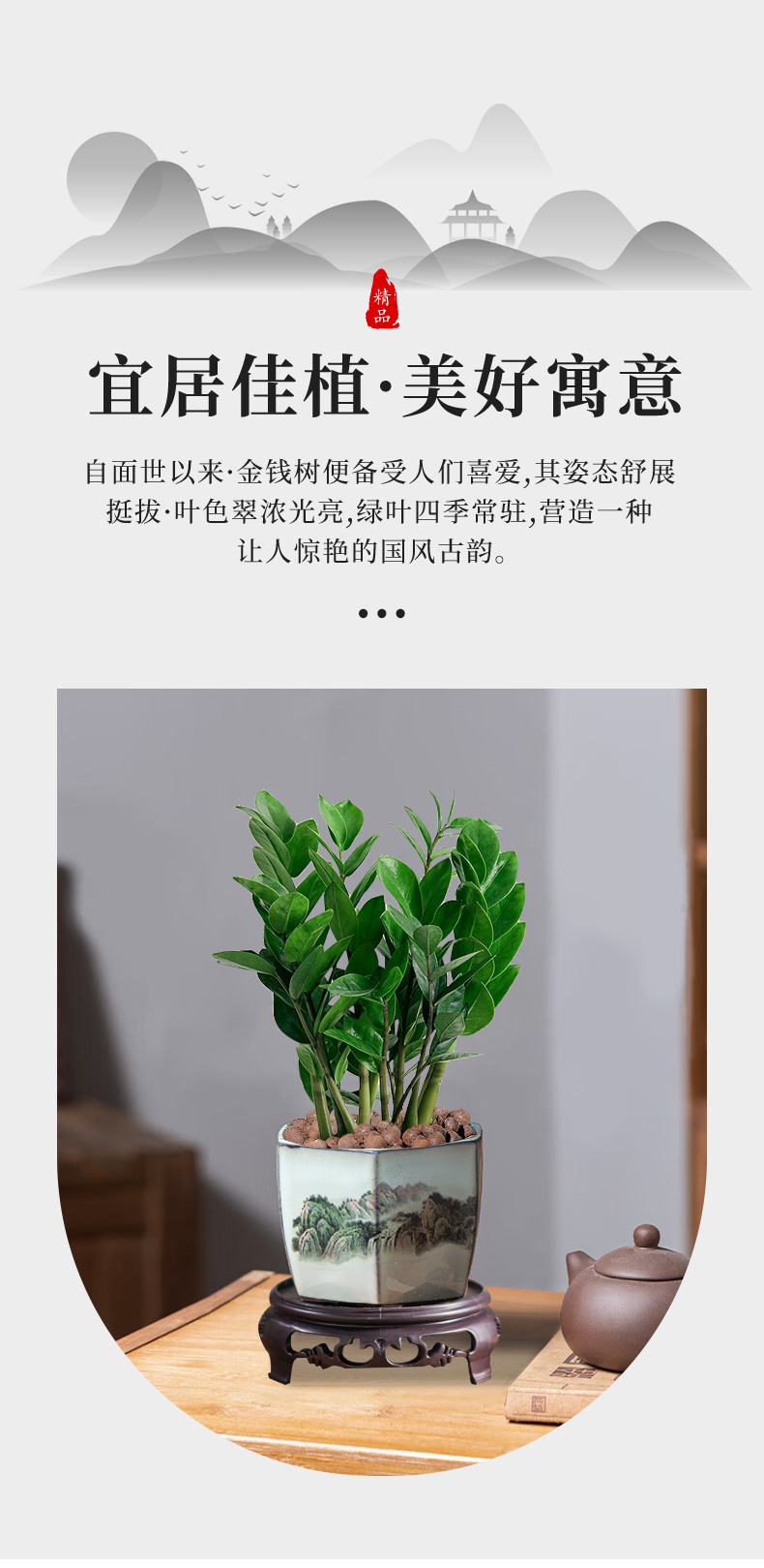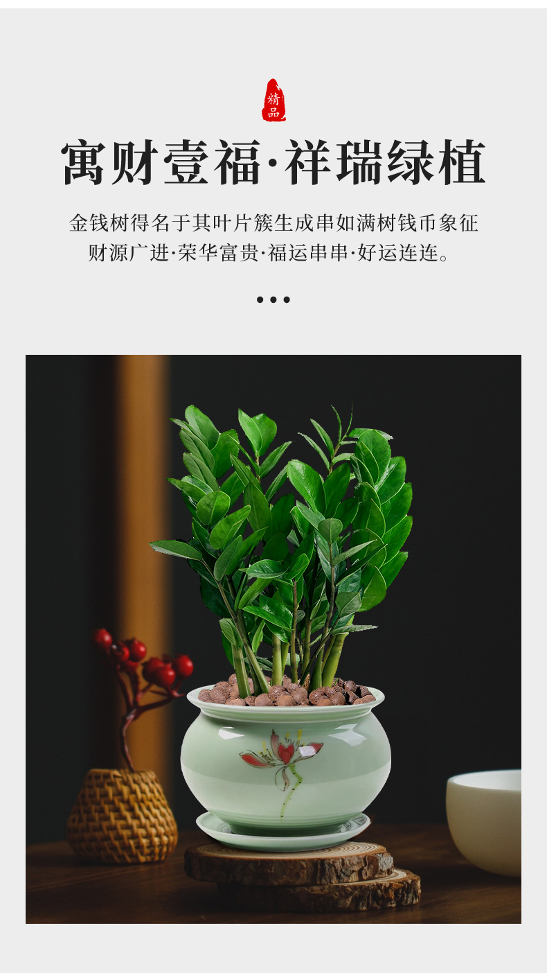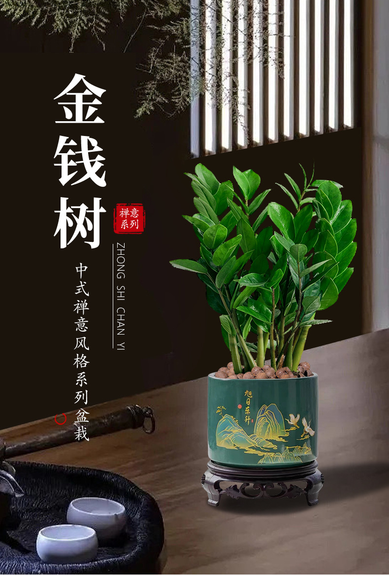 金钱树盆栽招财纳福植物室内禅意风客厅办公室桌面绿植花卉盆景 1件
