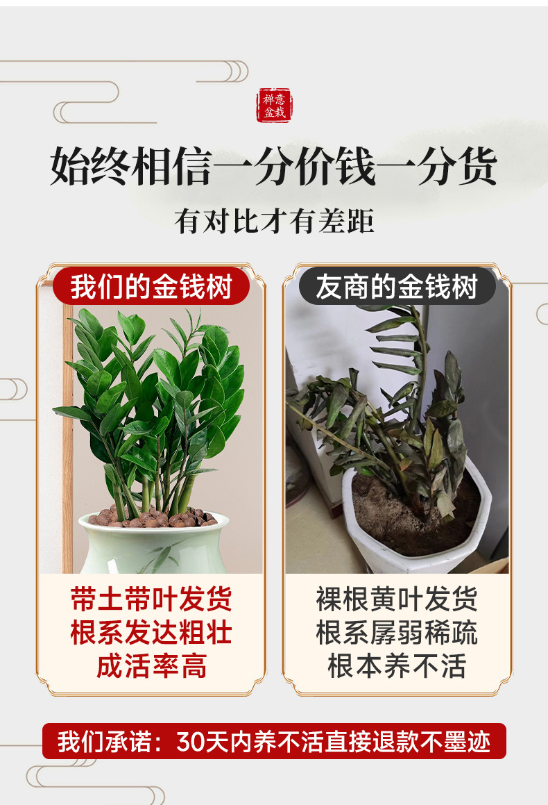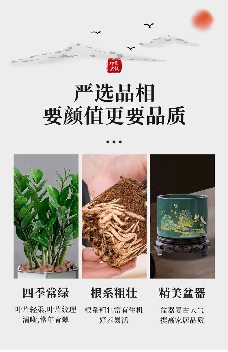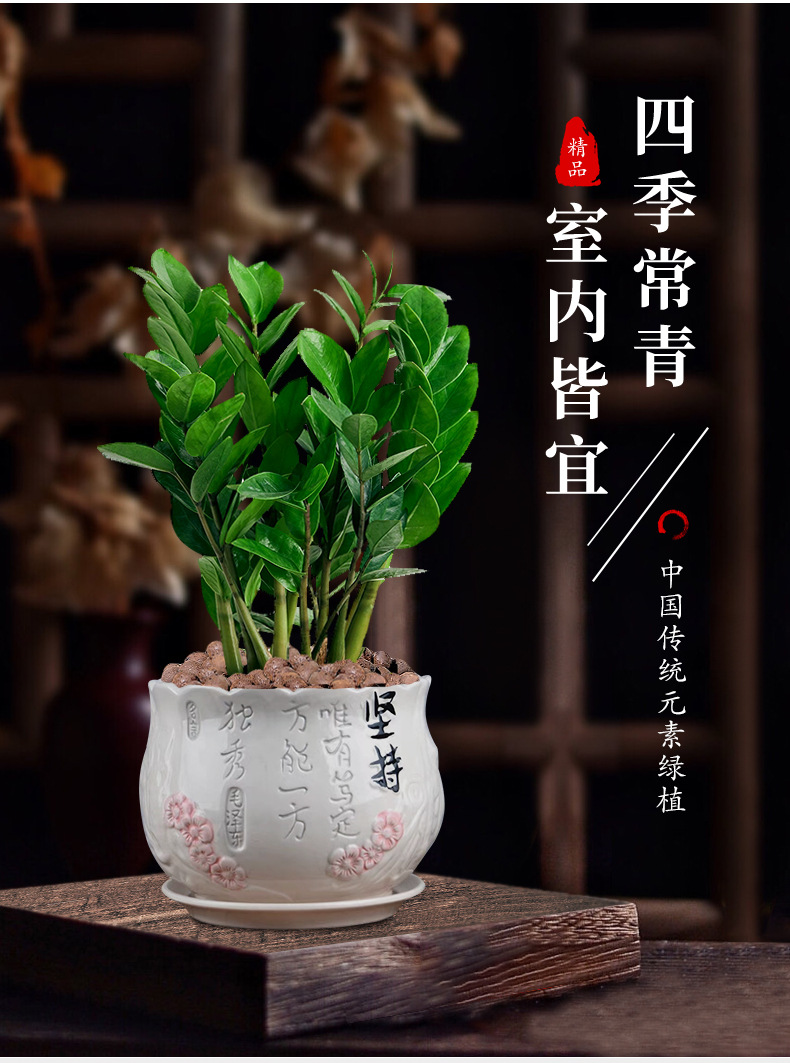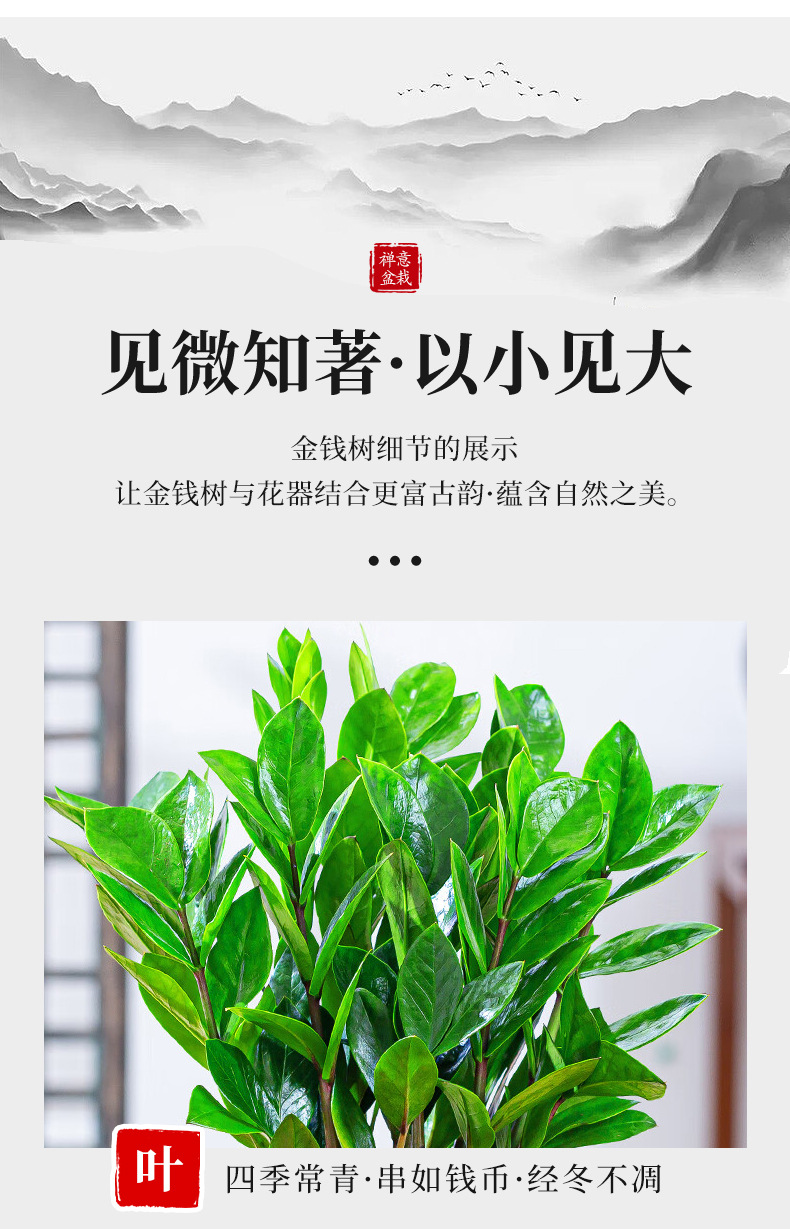 金钱树盆栽招财纳福植物室内禅意风客厅办公室桌面绿植花卉盆景 1件