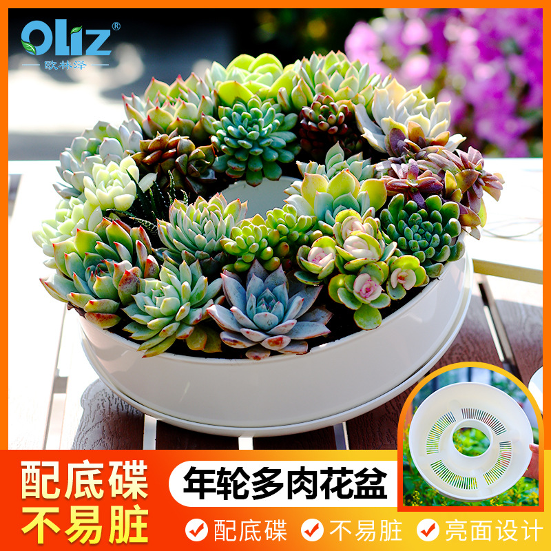 欧林泽跨境批发多肉花盆塑料大口径多肉植物个性创意塑料年轮花盆