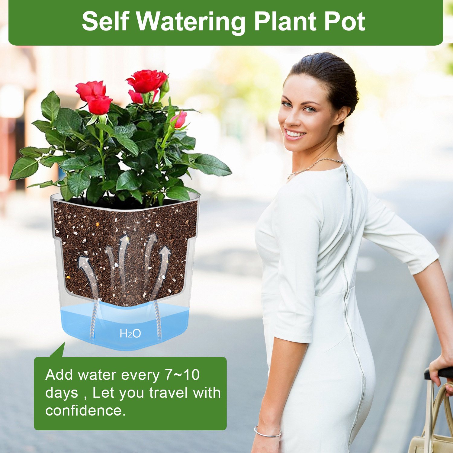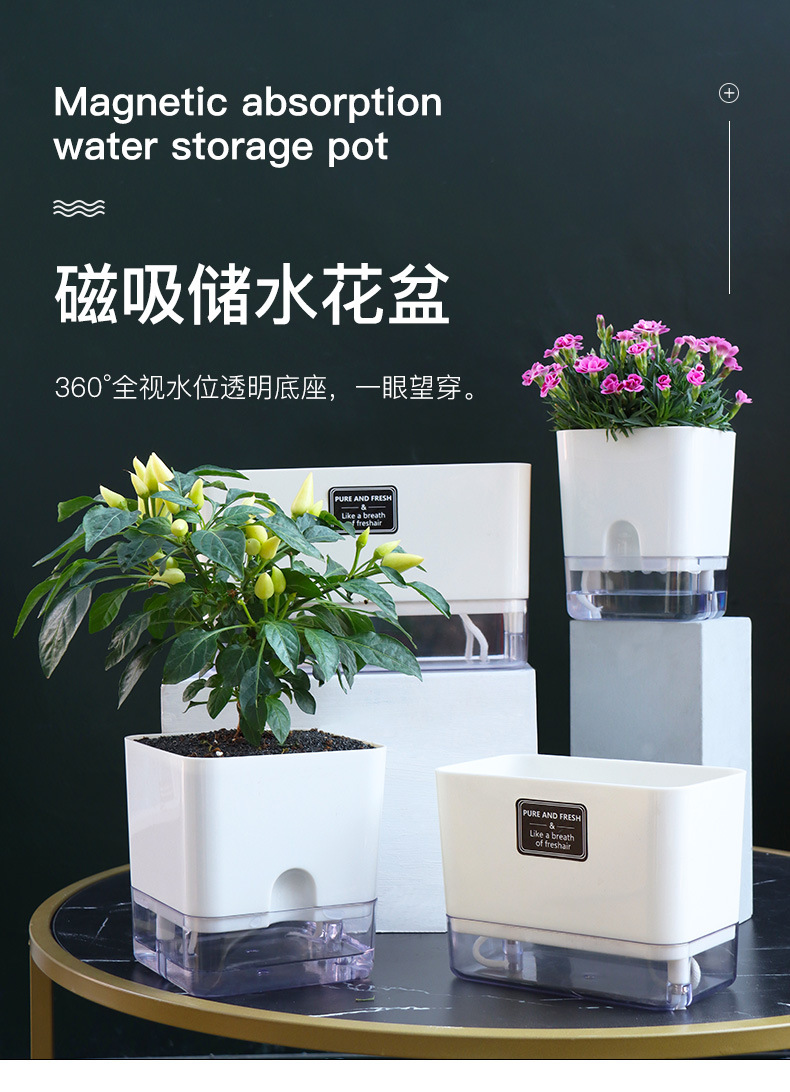 跨境新款自动储水花盆塑料大号室内外通用 智能吸水盆栽 阳台种植