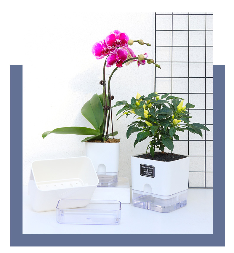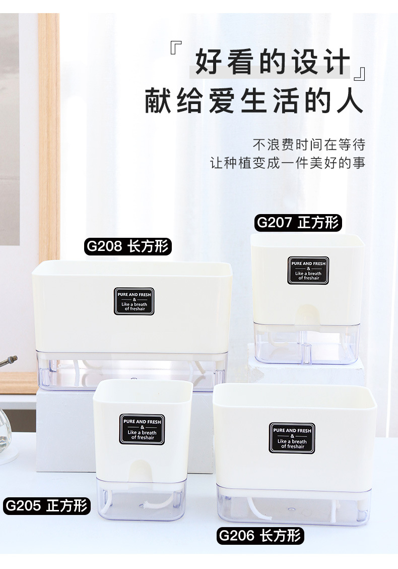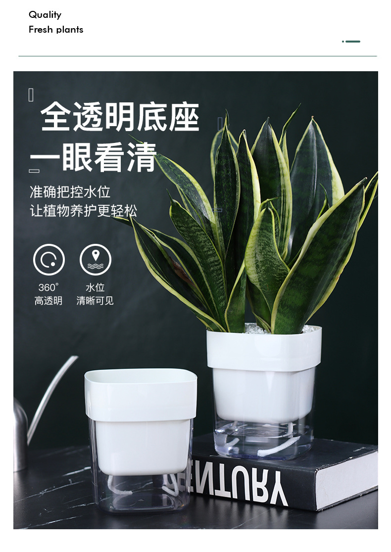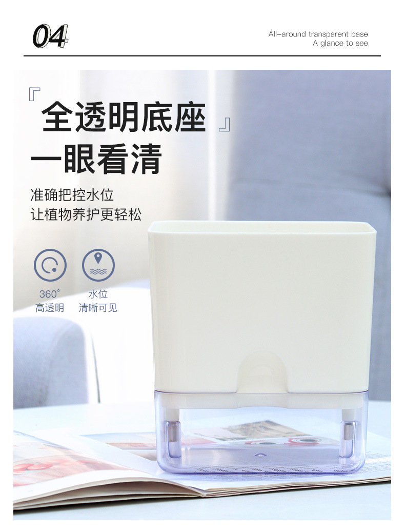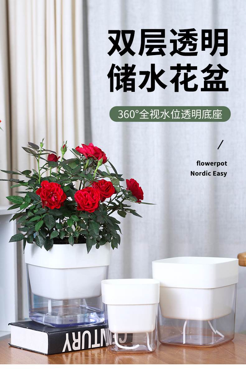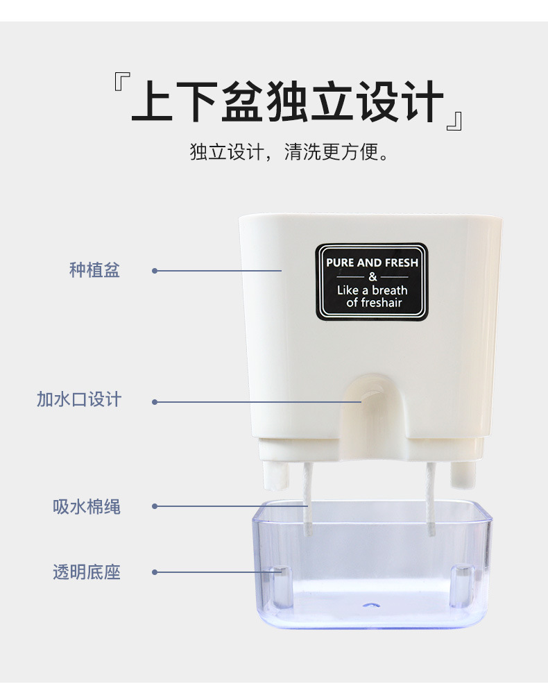 跨境工厂现货批发透明塑料懒人花盆双层简约自吸水棉绳亚马逊园艺
