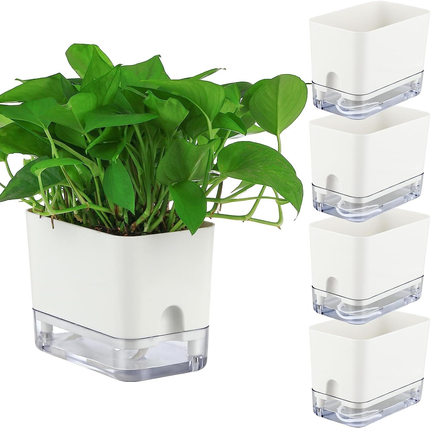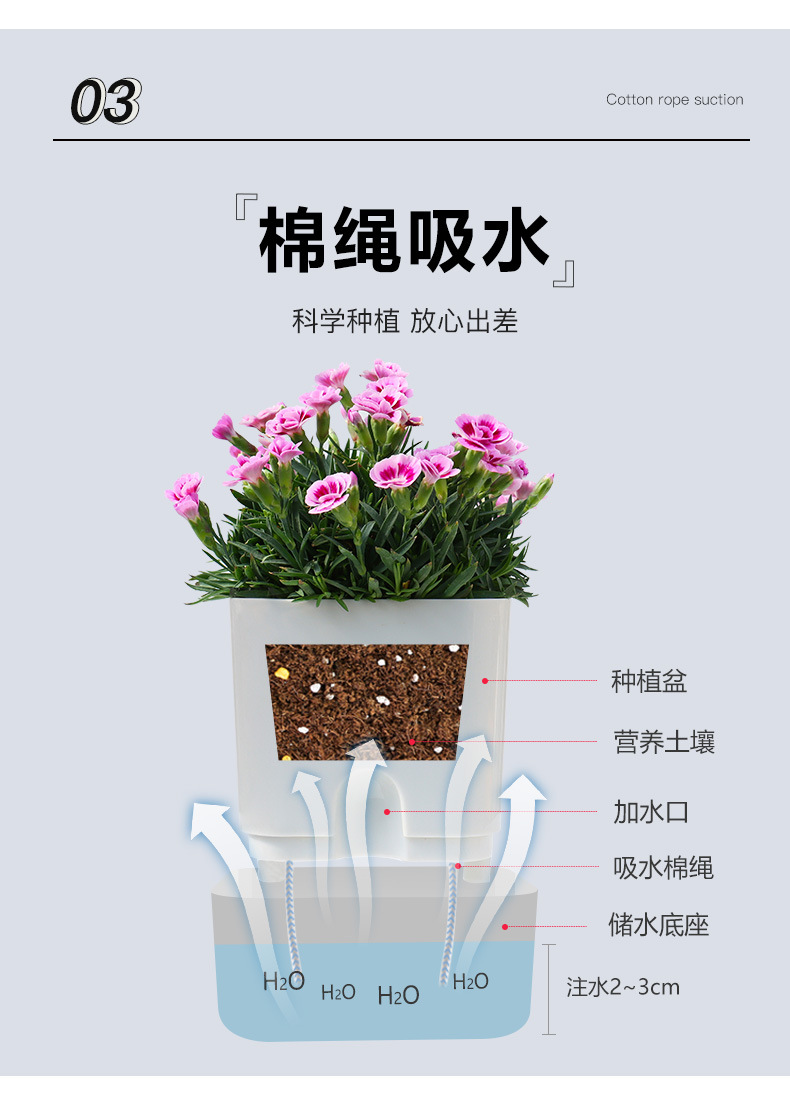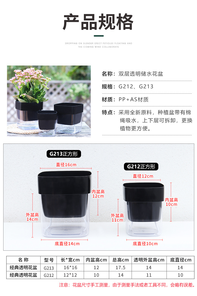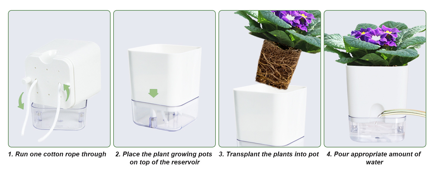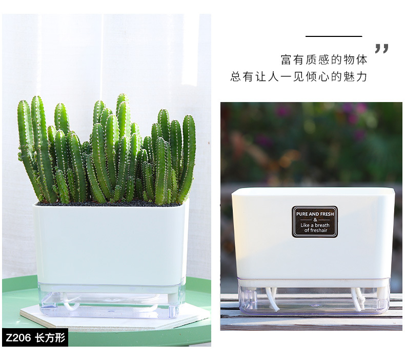 跨境工厂现货批发透明塑料懒人花盆双层简约自吸水棉绳亚马逊园艺
