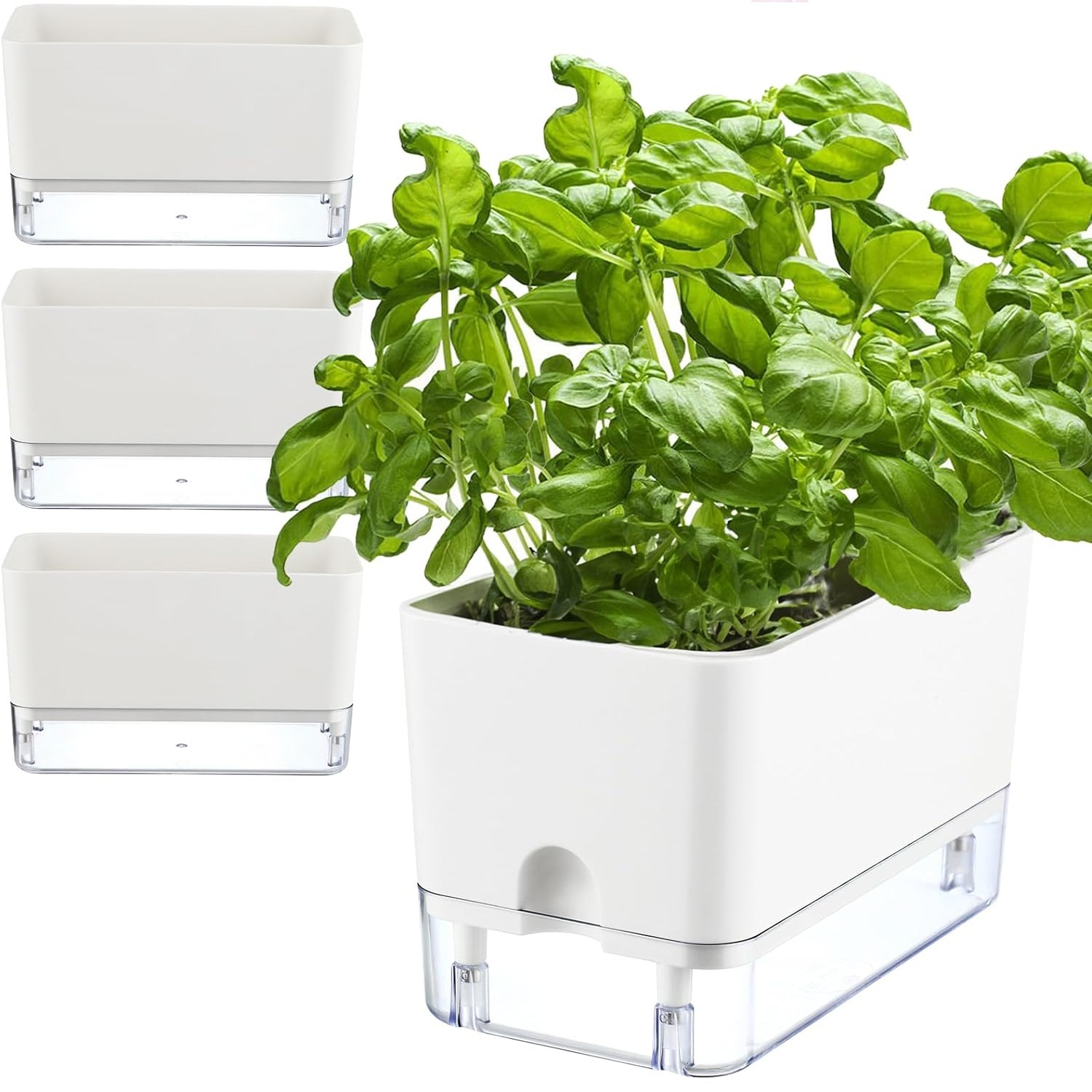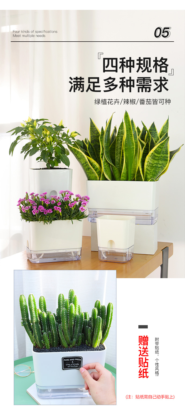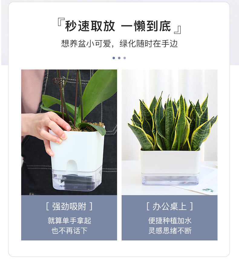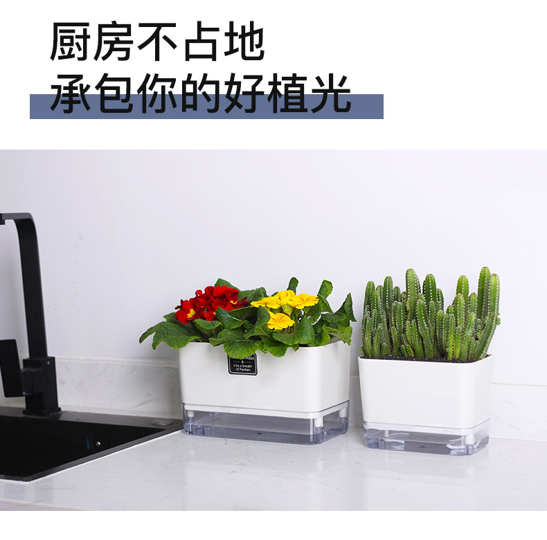 跨境货源工厂批发A6白色壁挂盆水位窗懒人花盆自吸水塑料储水花盆