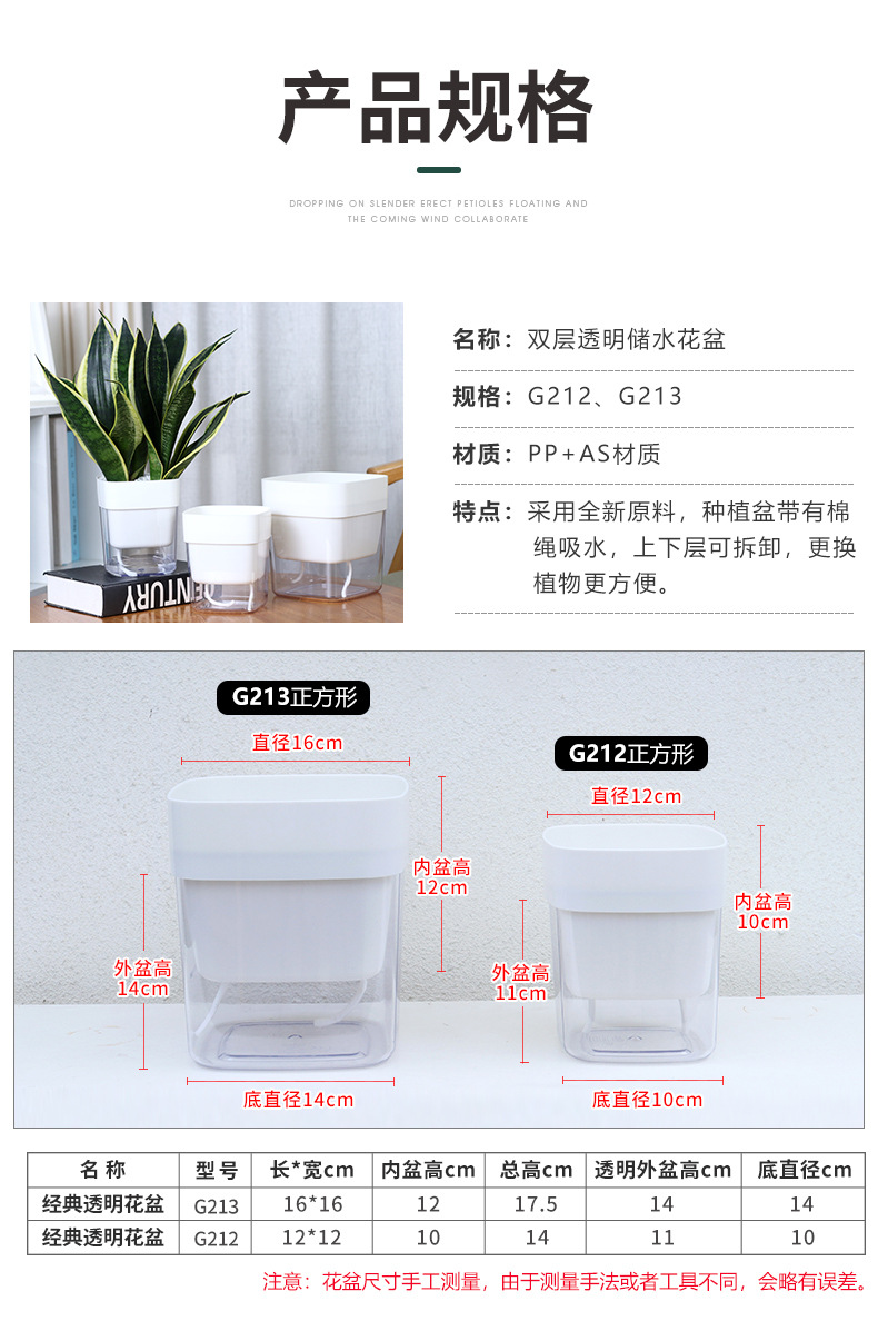 跨境亚马逊花盆新品现货批发透明塑料懒人花盆双层简约自吸水棉绳