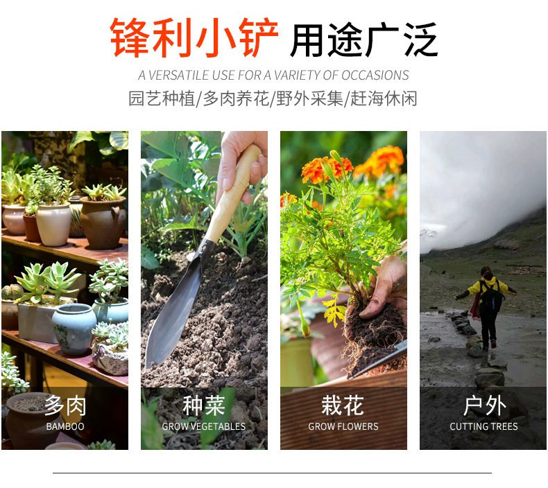 园林不锈钢小铲子种花园林工具盆栽种菜铁铲园艺挖土多肉花铲 1把