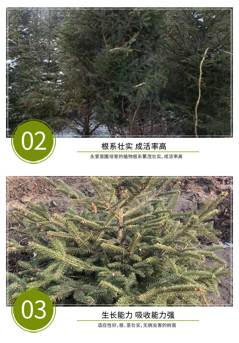 厂家批发基地云杉树圣诞云杉树苗品种多样四季常青园林绿化杉树 100件
