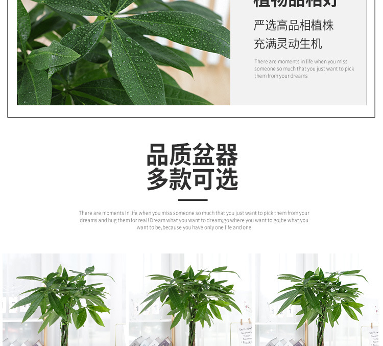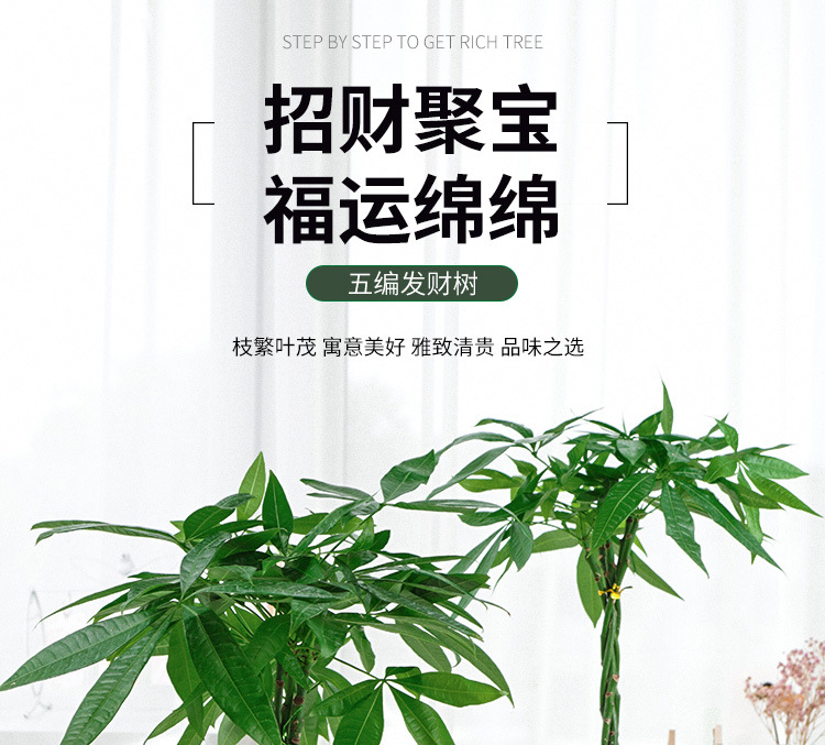 五辫发财树植物辫子发财树办公室内桌面盆栽四季常青好养花卉 1件