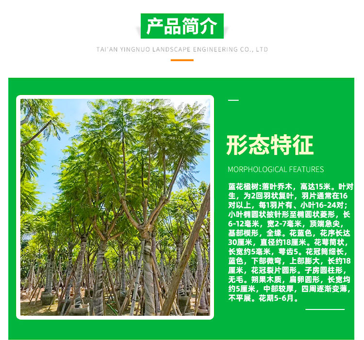 蓝花楹树苗木带土发货园林工程树绿化火焰木树市政行道树施工养护 1件