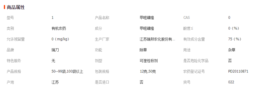 瑞刀75%甲嘧磺隆除草剂封地一扫光杂草灌木芦苇荒地公路非耕地 50袋
