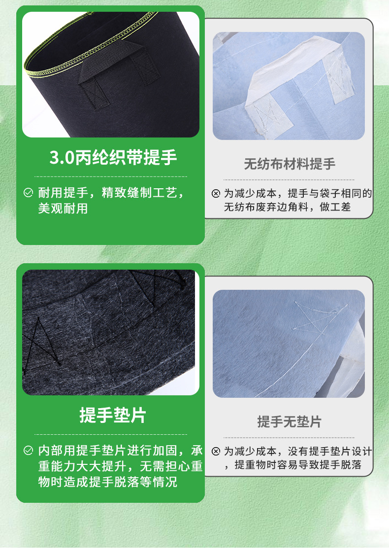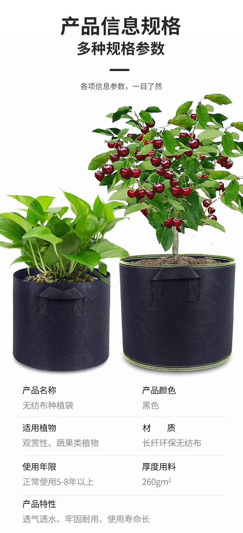 无纺布加厚双绿边种植袋出口黑色种植袋阳台植树袋外贸加仑袋植物 2个