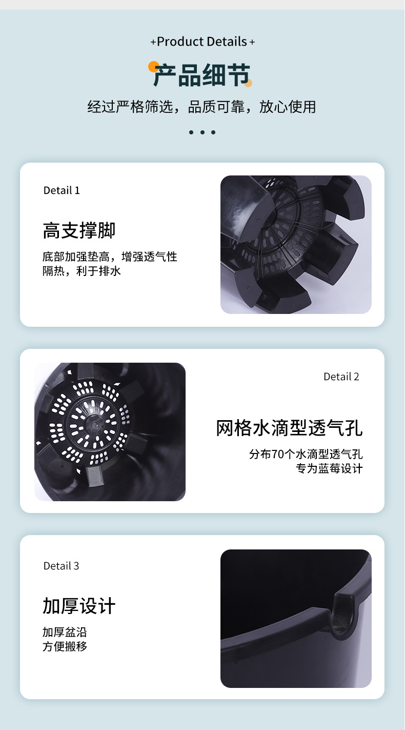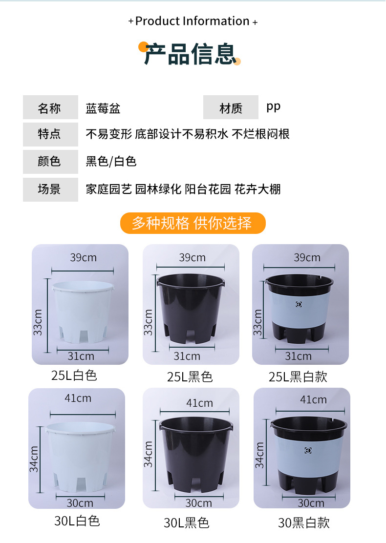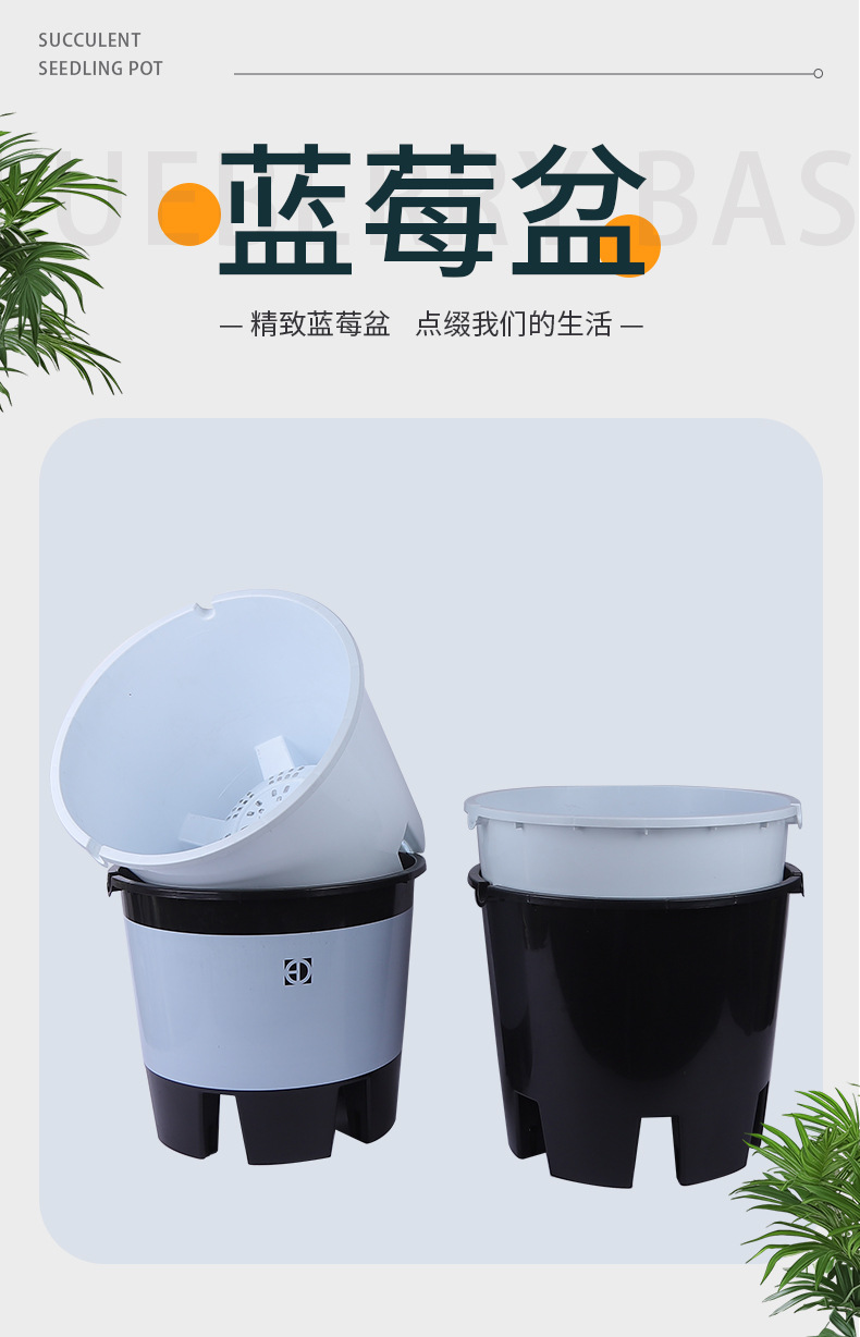 蓝莓盆塑料花盆30L25L侧排孔控根盆绿植花卉大号圆形花盆 20个