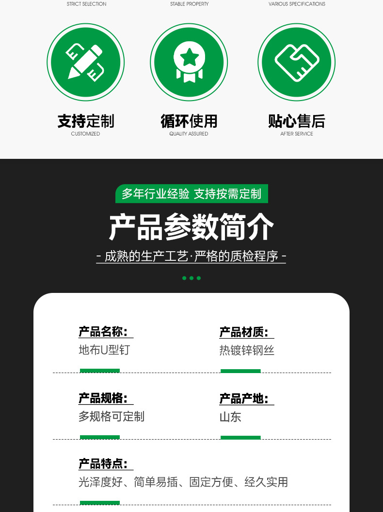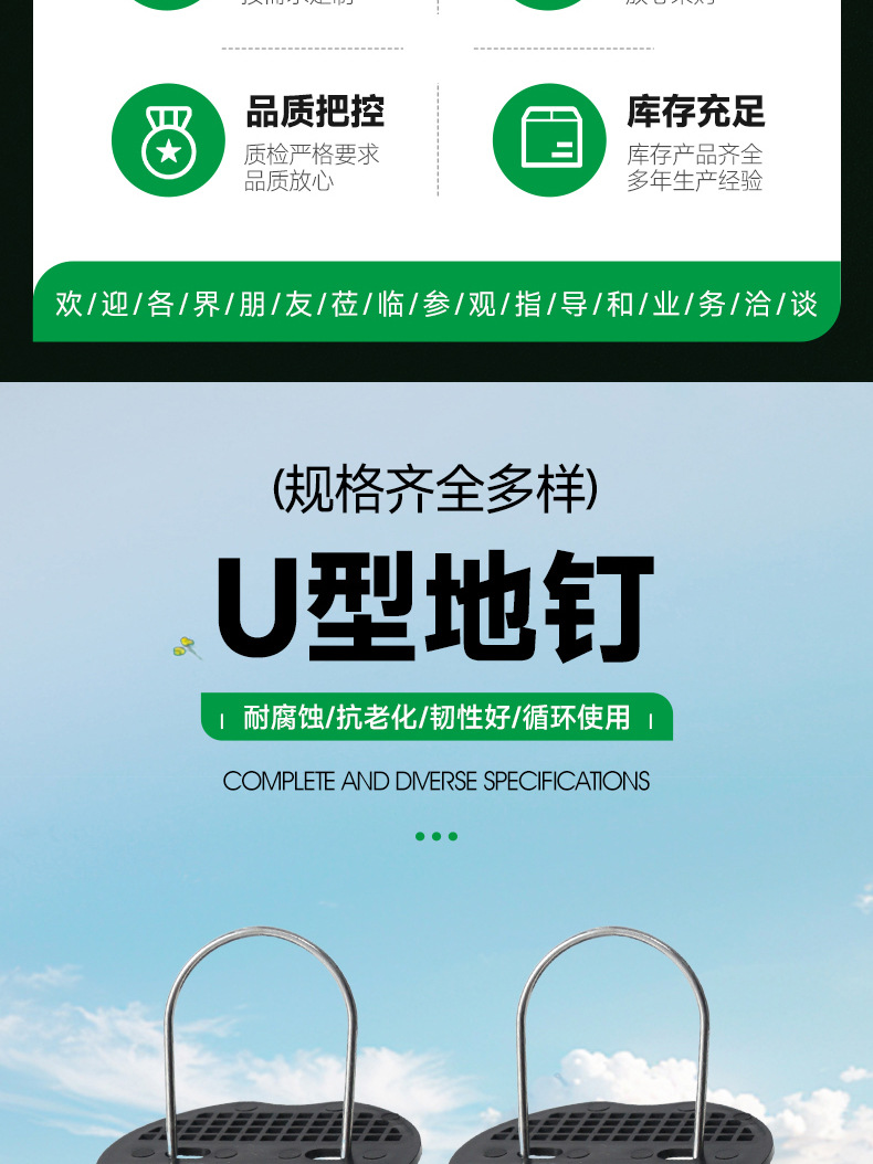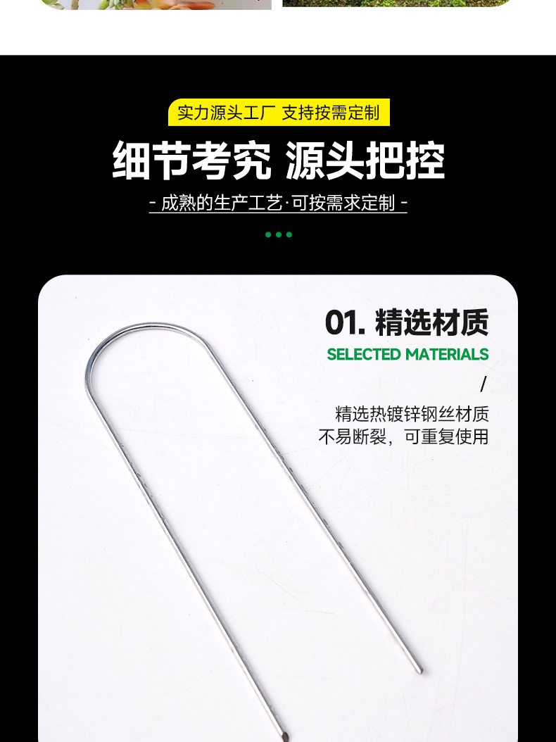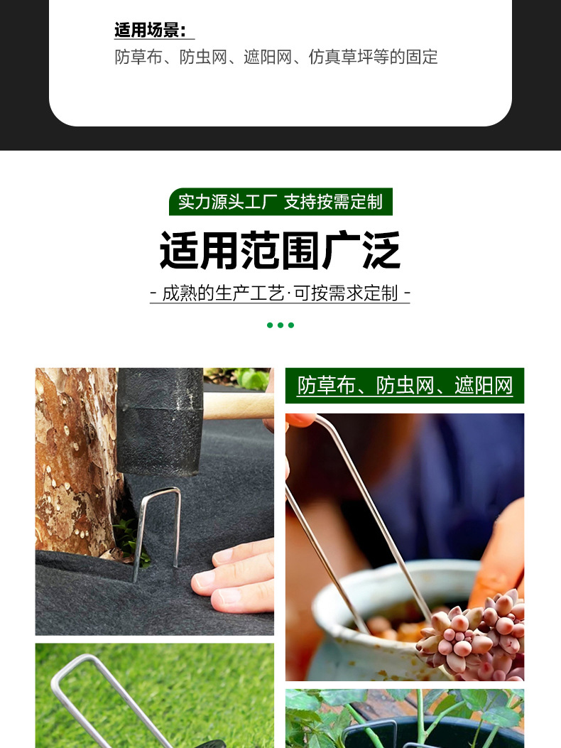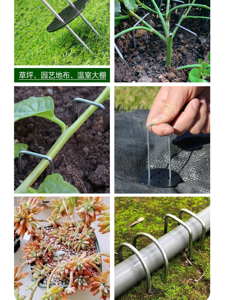 U型地钉 防草布地钉厂家园艺地布钉镀锌地膜钉草皮不锈钢固定钉 100支