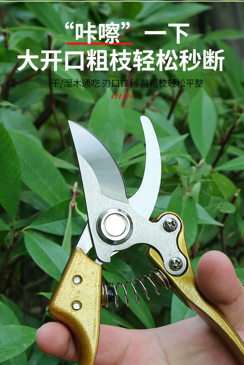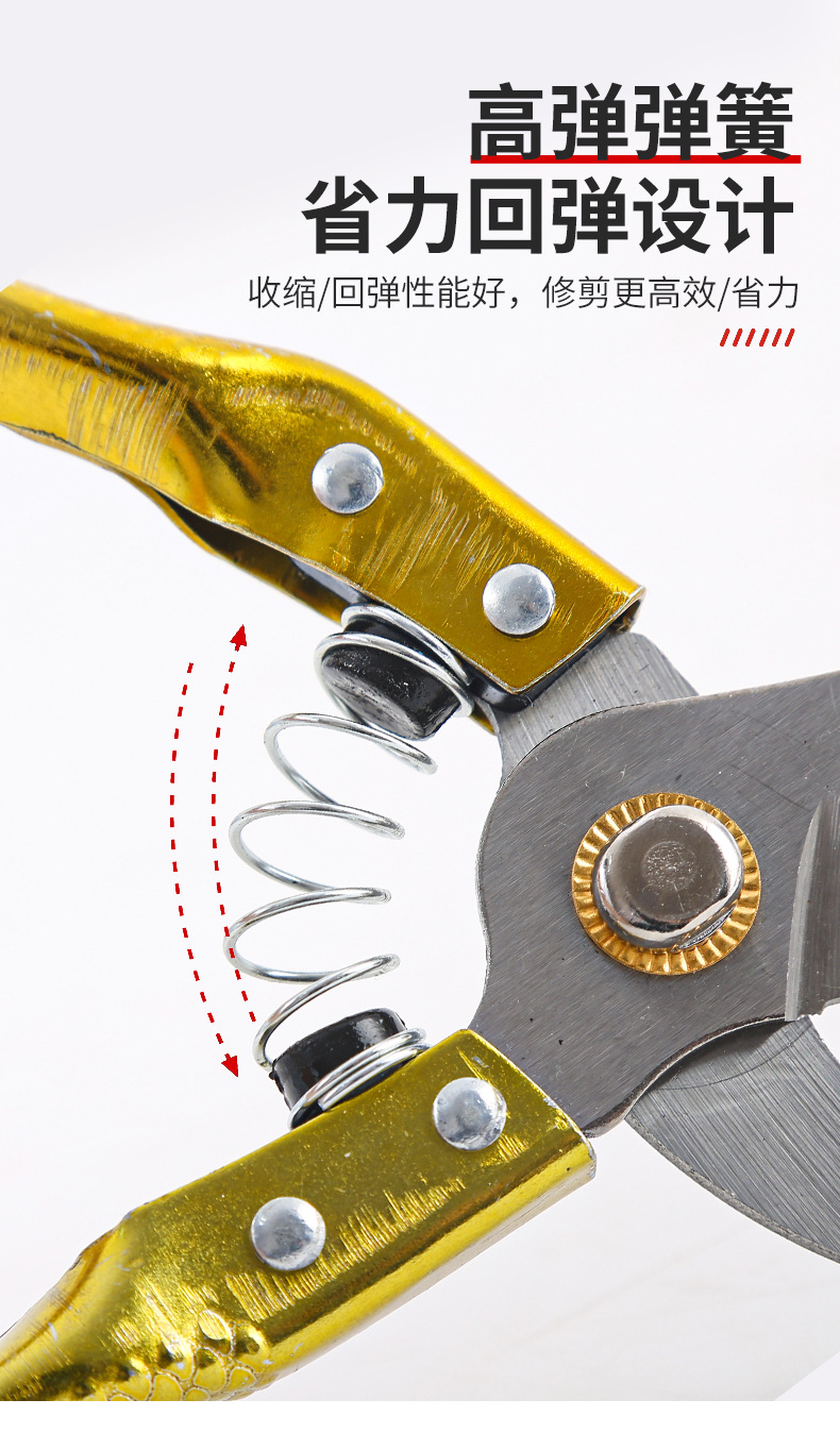 批发园林修枝剪多规格省力园林园艺粗枝剪果树弯头花园弹簧手动剪 1个