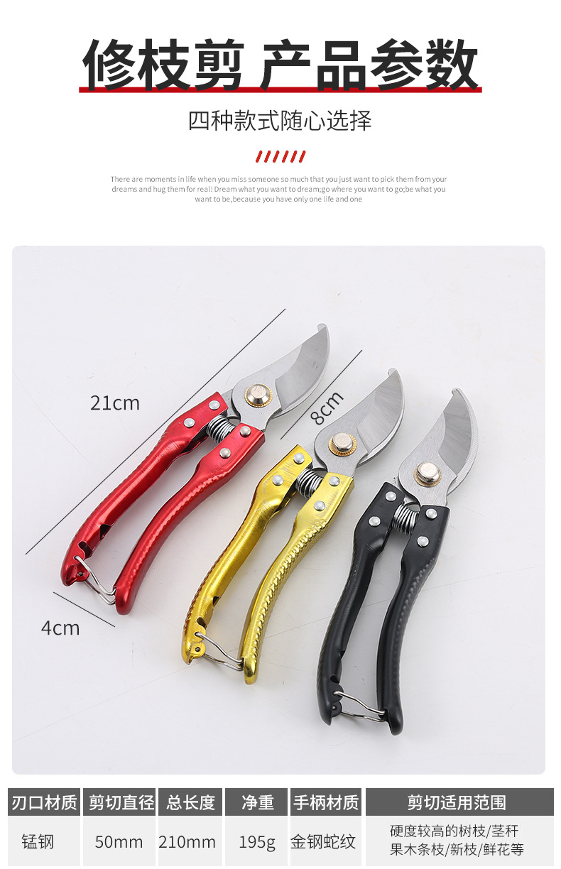 剪枝剪刀果树剪子修剪树枝专用果树剪刀家用粗大花剪园林修枝剪 1件
